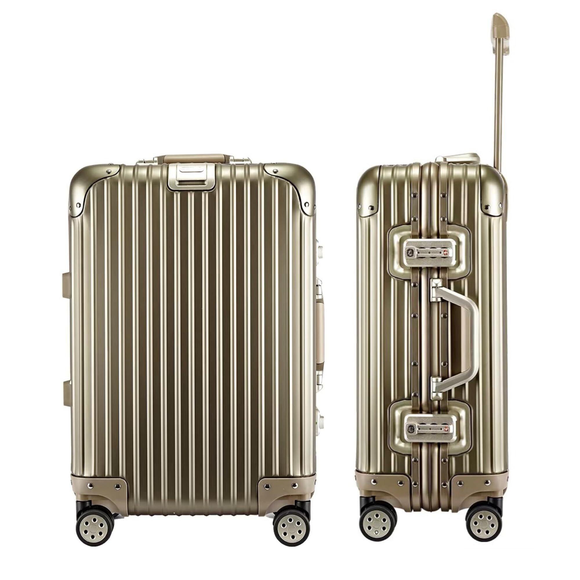 [Yuweijie] スーツケース アルミ合金製 キャリーケース大型 軽量フレームタイプ キャリーバッグ 2泊3日 大容量 キャリートランク チタンゴールド 機内持ち込み 耐衝撃 静音ダブルキャスターTSAロック搭載 旅行 出張 Sサイズ