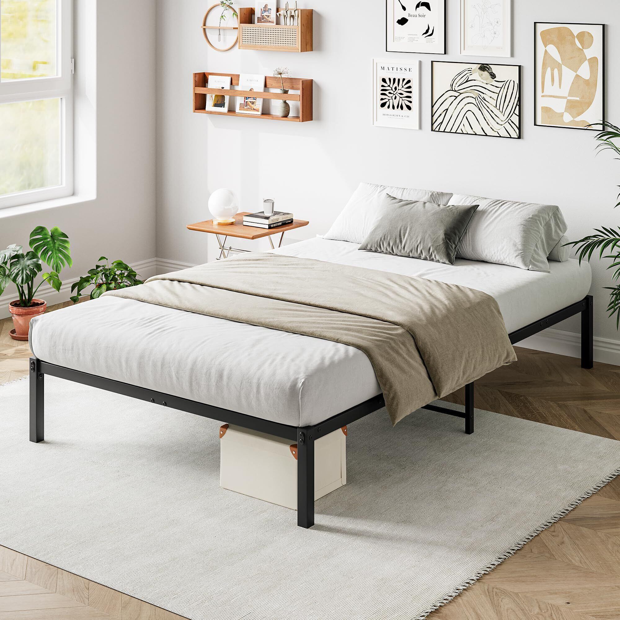 【スチールベッドを強力にサポート】この金属プラットフォームベッドフレームは、厚みのある高品質のスチール素材で作られています。 ベッドの頭と足の強化チューブにより、ベッドフレームの安定性が向上し、質感も優れています。頑丈なスチールスラットと構造的にアップグレードされた横方向のサポートチューブが、たわみやガタつきを防ぎ。