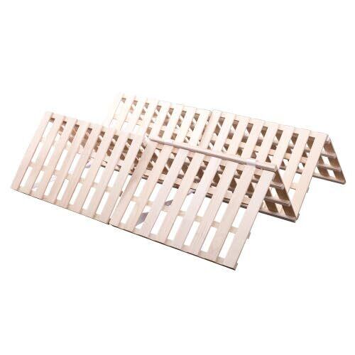 【静止耐荷重200kg】このベッドのすのこは積層板を採用しております。マットレスに比べて薄い布団は、一箇所に重さが掛かりやすくベッドの床面が割れる原因になります。丈夫なすのこなら、湿気対策にも強度も優れており、布団使用に適しています。すのこ同士はベルトで連結されておりずれを防止する同時に、こすれあう部分にベルトが挟み込まれる形になるため、ベッドのギシギシという音鳴りを防いでくれます。すのこはフレームに固定する構造なので、マットレスや布団を置く際にもズレることがありません。