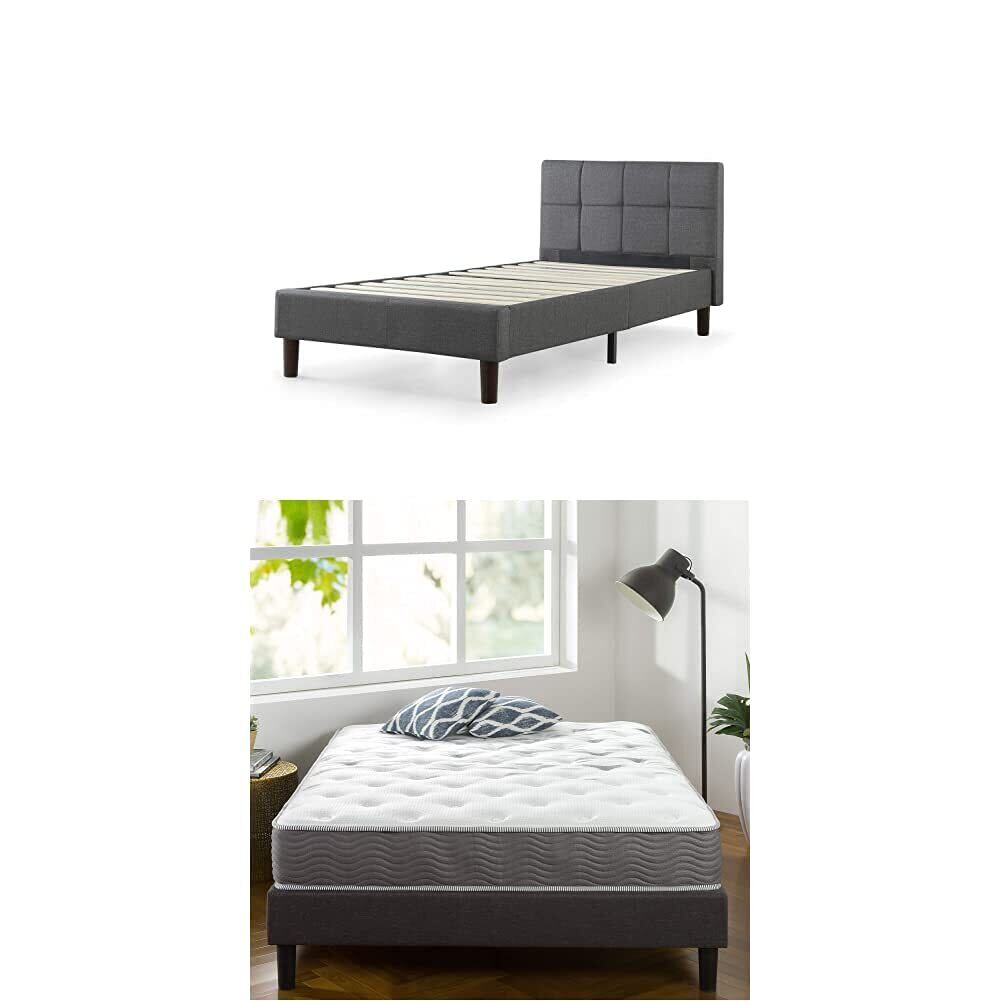 【セット買い】Zinus (ジヌス) すのこ ベッド フレーム シングル 36cm ヘットボード付き 布張り スクエアスティッチ Upholstered Square Stitched マットレスセット