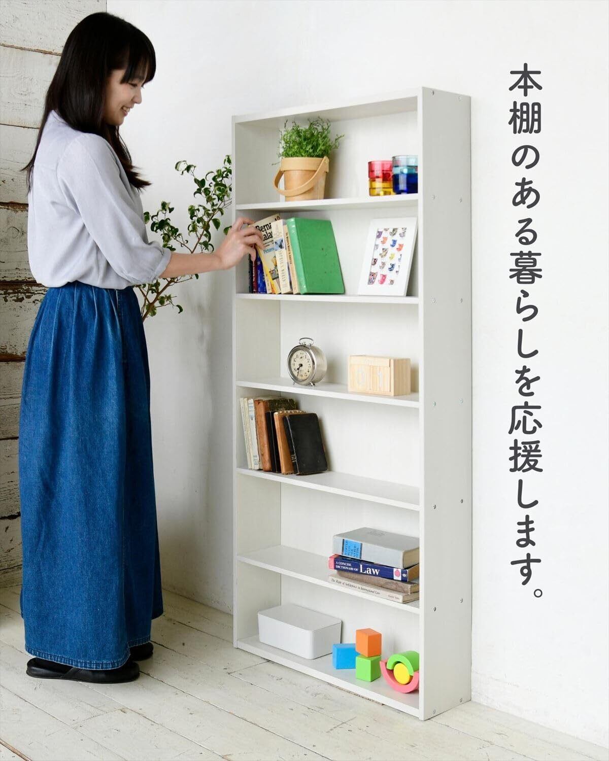[山善] 本棚 大容量 スリム 【全体耐荷重70㎏】 6段 幅60×奥行17×高さ134cm ラック 組立品 ホワイト木目調 CMCR-1360(JW)