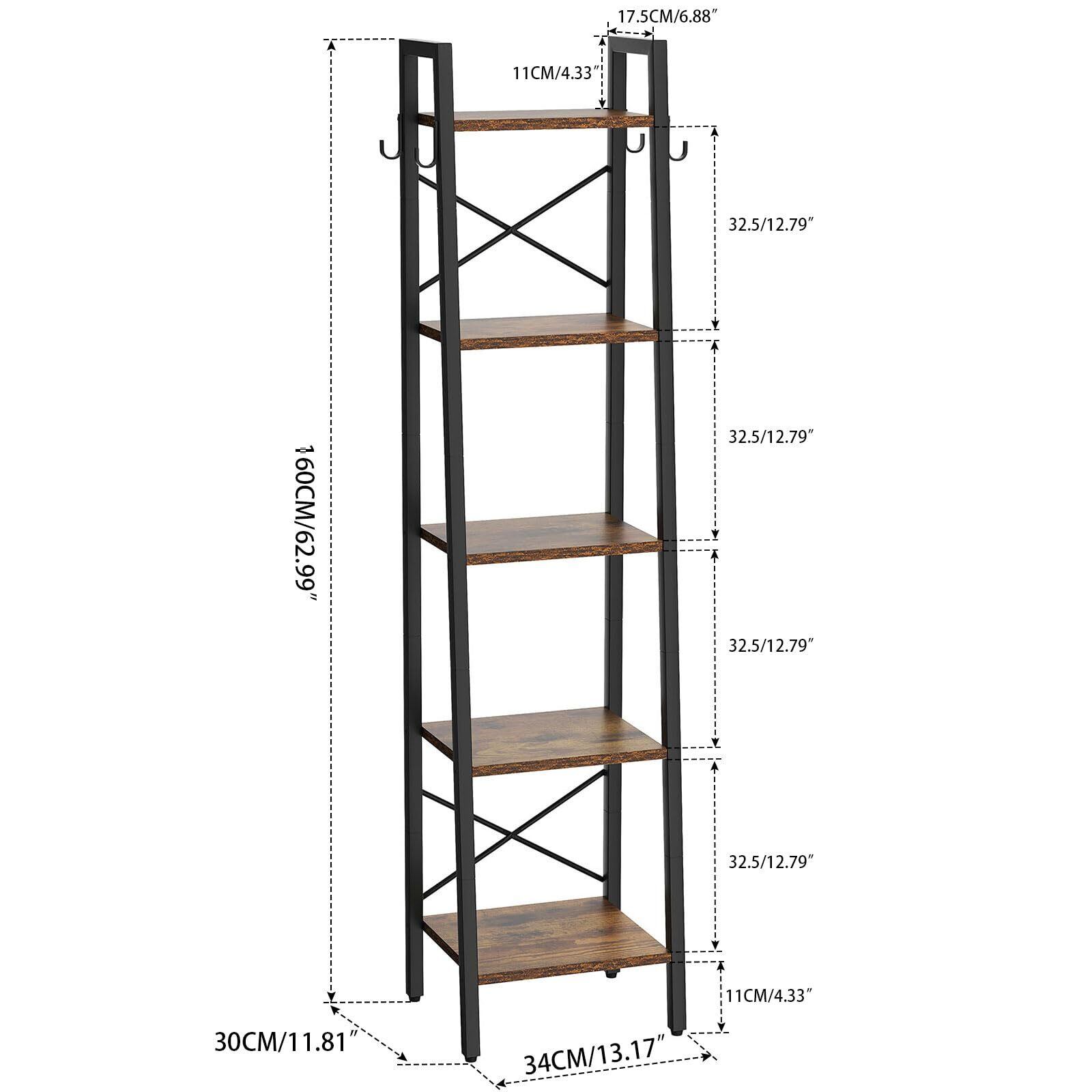 YMYNYオープンシェルフ 5階建て本棚 台形書架 独立式棚 長さ34 x幅30 x高さ160 cmストレージラック 木製棚をDIYする 堅牢なX型メタルフレーム付き 側面A字構造 ホームオフィスリビングオフィス用 茶色 JPHBC025H