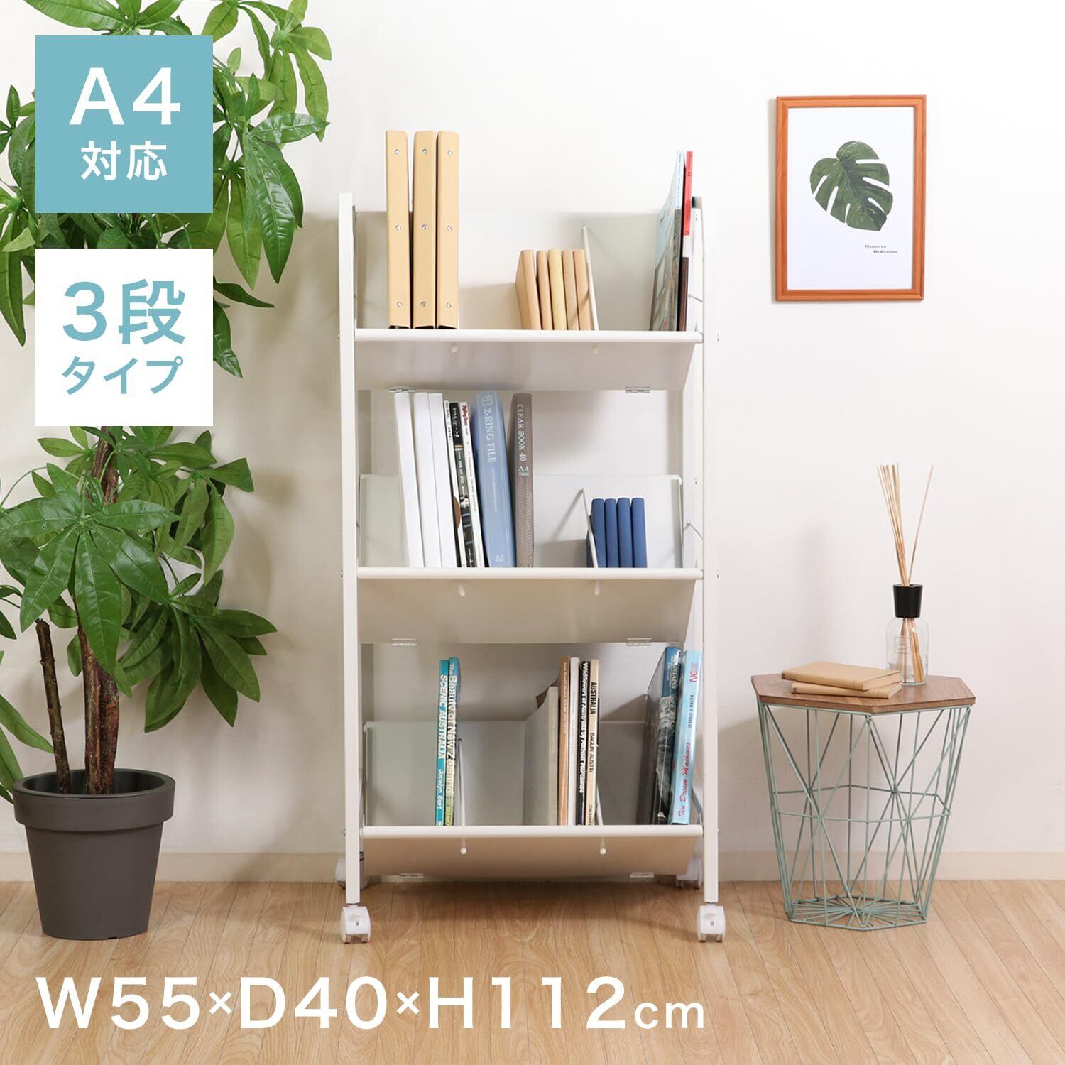 不二貿易 ファイルラック ファイルワゴン 3段 幅55×奥行40×高さ112cm ホワイト 書類収納 A4収納 キャスター付き 13310