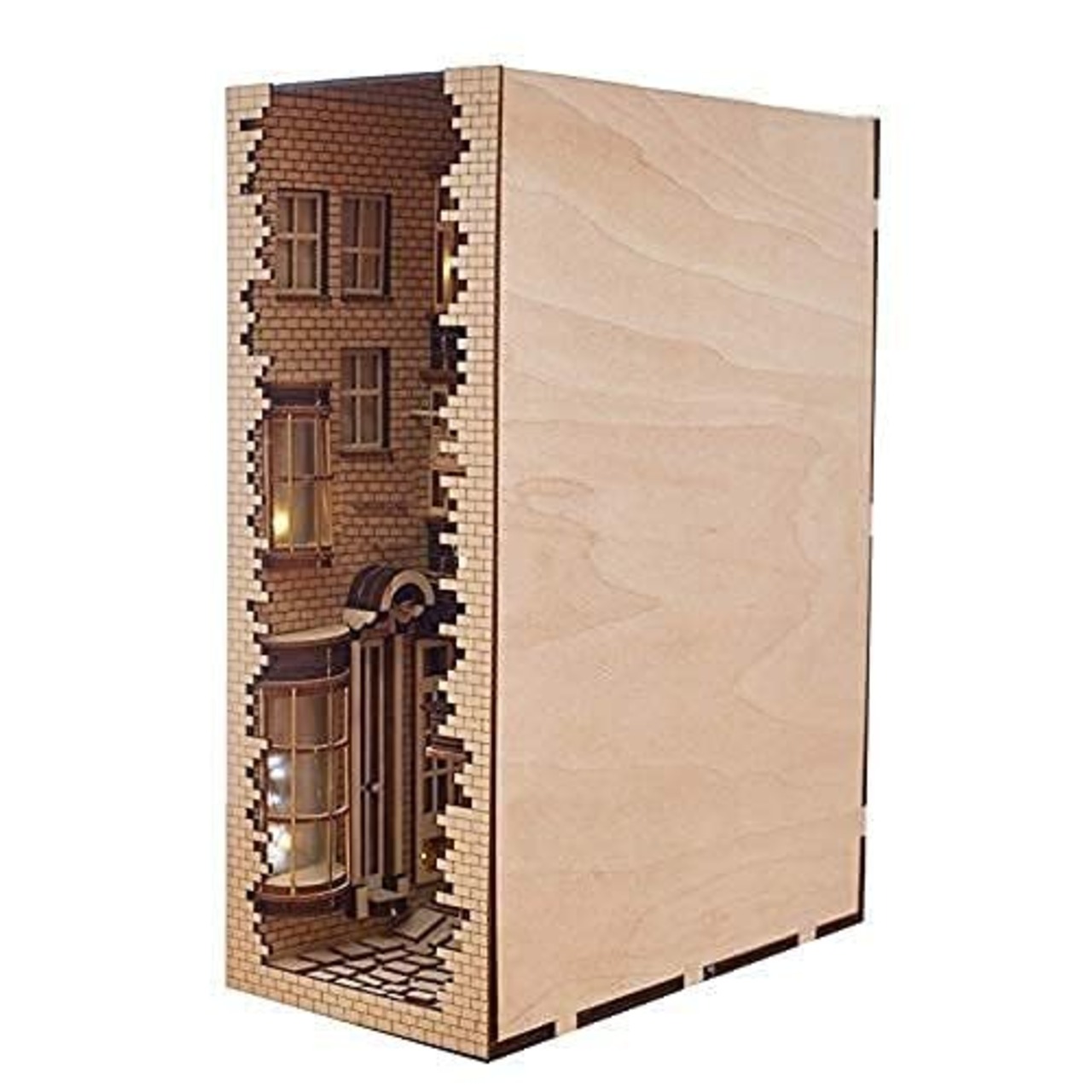 木製 DIY Diagon Alley ブックヌークキット 大人用 ブックヌークミニチュアキット 装飾ブックエンドスタンド 3Dパズル 本棚挿入本 ハロウィン/クリスマスデコレーション/大人へのギフト(Diagon Alley 1)