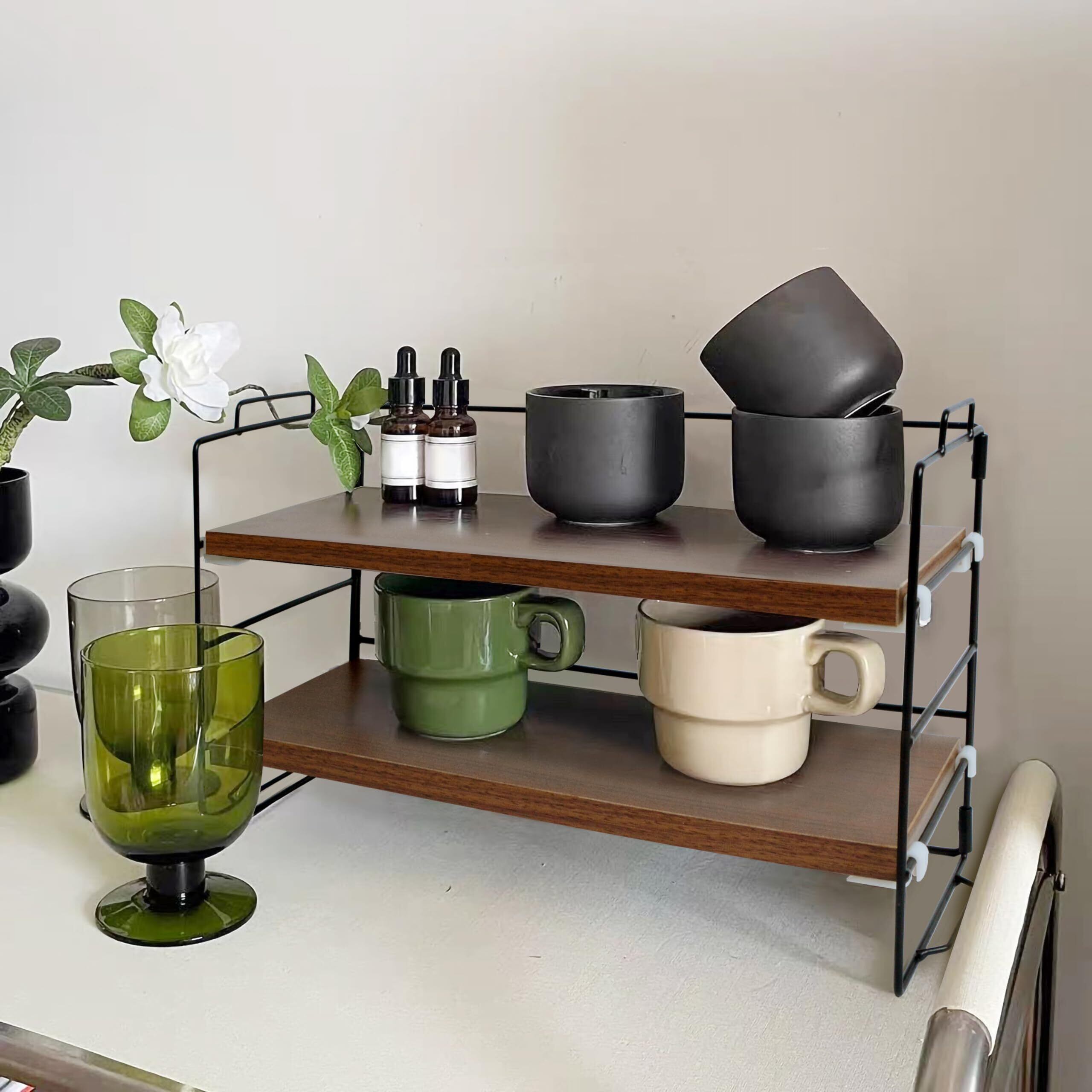 卓上ラック 二段式 机上棚 机上ラック 卓上棚 収納ラック デスク収納ラック 棚板2枚 デスクラック ミニラック キッチン 棚 折り畳み 本棚 小物置き おしゃれ キッチン/寝室/洗面所/事務用/学校用 組み立て簡単 EX-SPACE