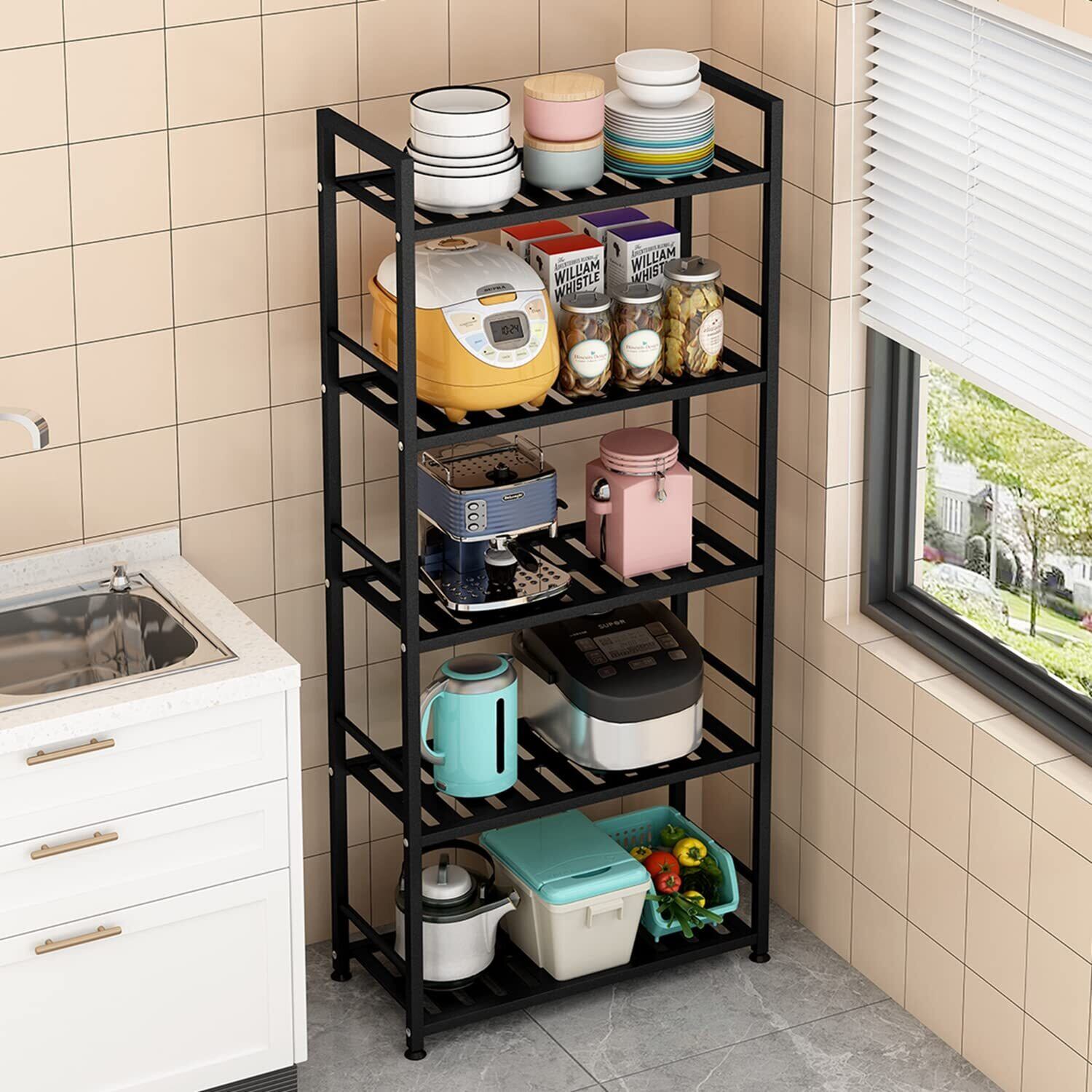 Fainyearn スチールラック レンジ台ラック キッチンラック 収納ラック 本棚 キッチン 整理棚 シェルフ棚 メタル製 メタルラック 5段 幅43.5cm×奥行30cm×高さ140cm