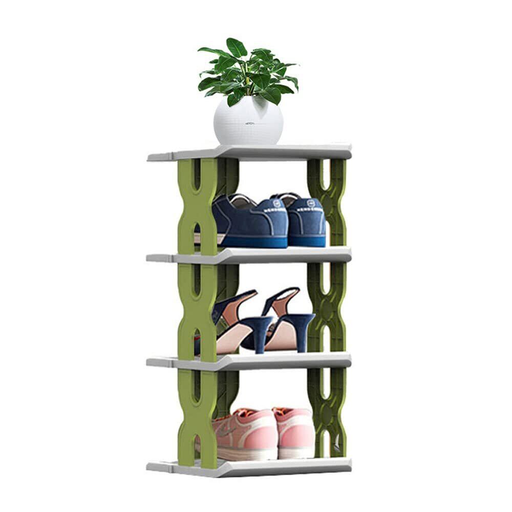 AiMMei シューズラック 省スペース おしゃれ 廊下 玄関収納 多機能 下駄箱 スリム 靴収納 組み立て式 安定 軽量 耐久性 厚さ 家庭用 狭い空間向け 本棚 自由 組立簡単 綺麗 (4段, グリーン)