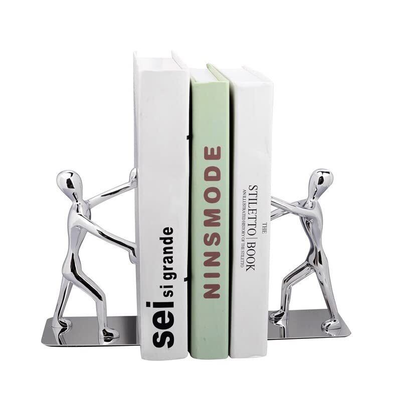 Ansimple ブックエンド 本立て ブックスタンド シルバー小人 さびない金属製 滑止め付 倒れない 滑らない 学校 部屋 卓上収納 机と本棚の飾り物 置物 おしゃれ インテリア 2枚セット