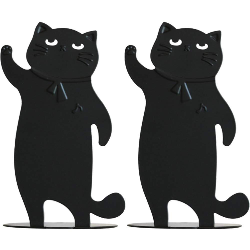 Umora かわいい猫 鉄製 ブックスタンド ブックエンド ブックストッパー 仕切りスタンド 書類入れ 卓上収納 本棚 置物 2枚1組(黒い)