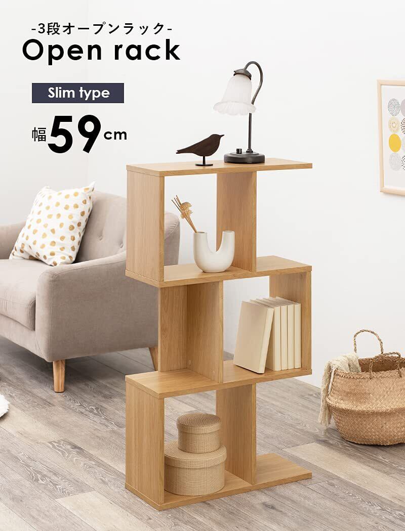 萩原 ディスプレイラック 本棚 パーテーション 木目調 ナチュラル 約 幅59 奥行24 高さ107 cm 3段 本 書類 ラック 棚 bookshelf RCC-1004NA 1台入り