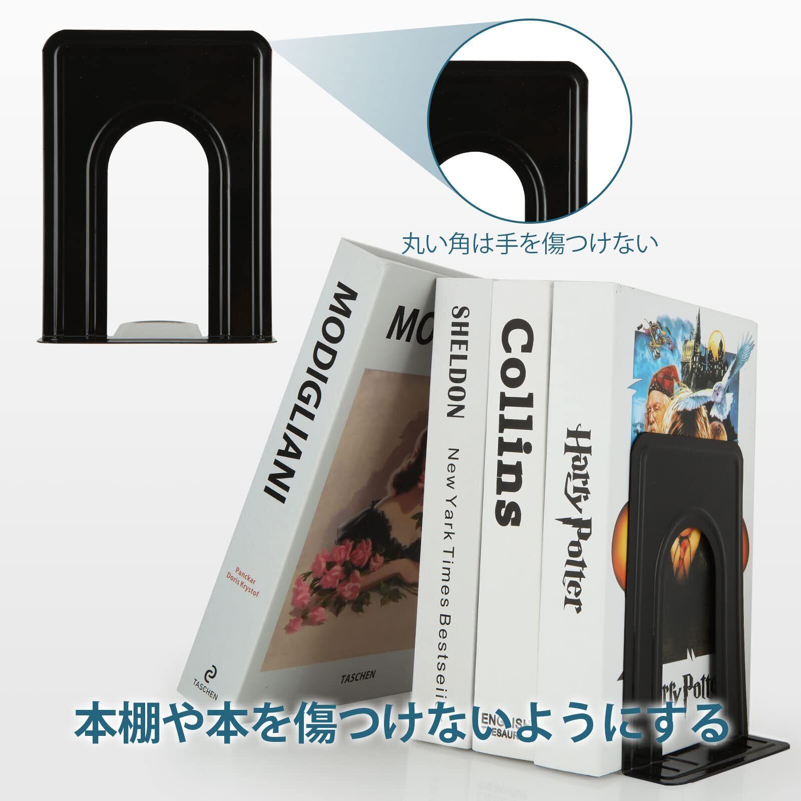安全性と親密さ:ブックシェルフホルダーのカーブしたコーナーとラウンドエッジのデザインにより、安全率が向上し、指や貴重な本を傷つけません。安心して本棚やデスクトップに置いてください。
