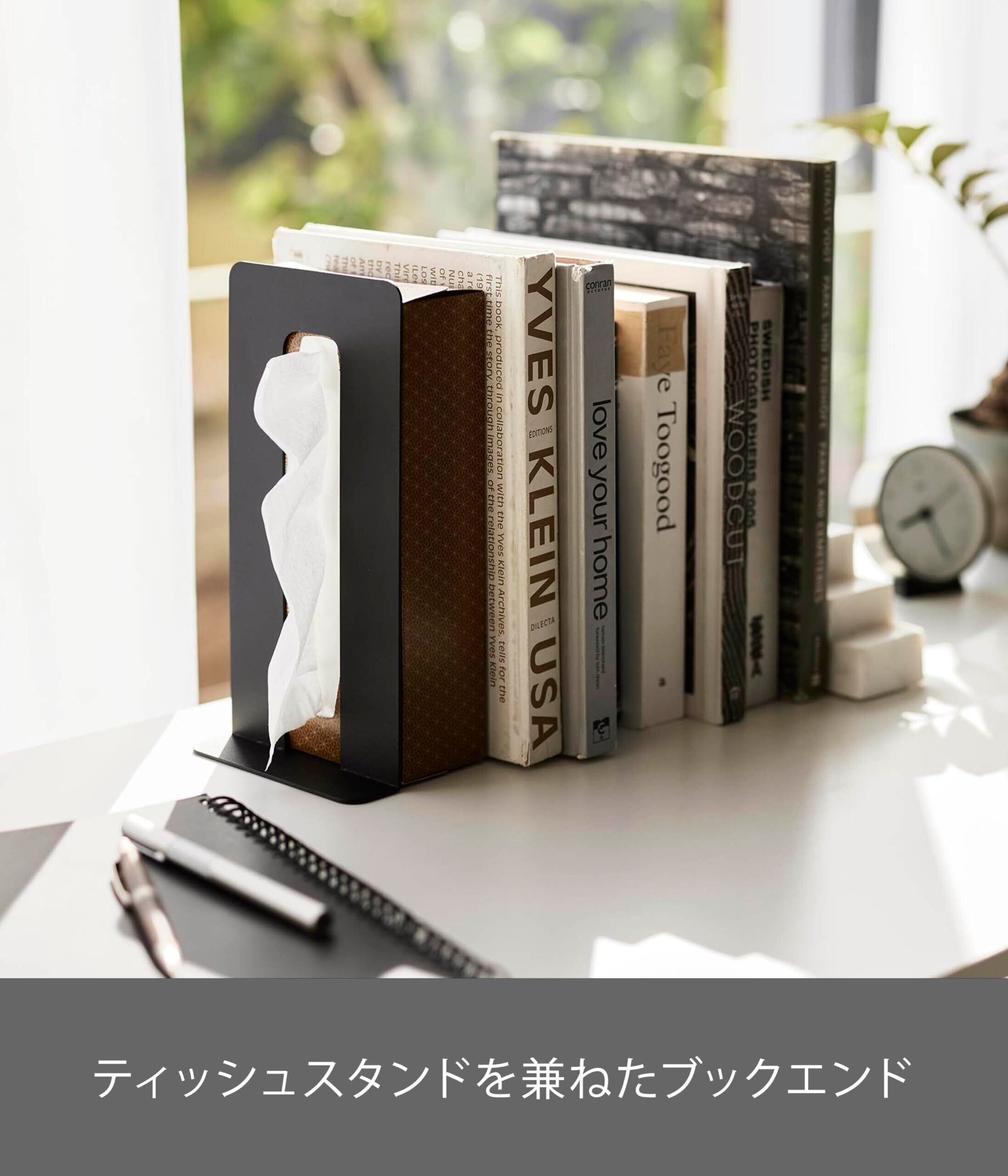 山崎実業(Yamazaki) ティッシュが引き出せる ブックエンド ブラック 約W12×D18×H24cm タワー tower 本立て 書斎 キッチン ブックエンド 4786