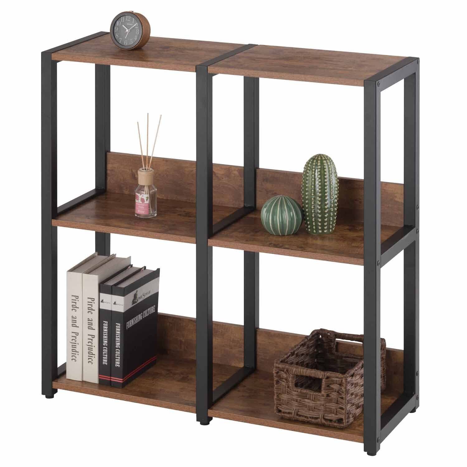ドウシシャ ビスカーナ ラック 木製 飾り棚 幅85 2段 黒 スチールフレーム 頑丈 おしゃれ オープンラック 全体耐荷重60kg 木製家具 ディスプレイラック ウッドラック 奥行きスリム PVC素材 幅85×奥行30×高さ84cm BC2x2-OP