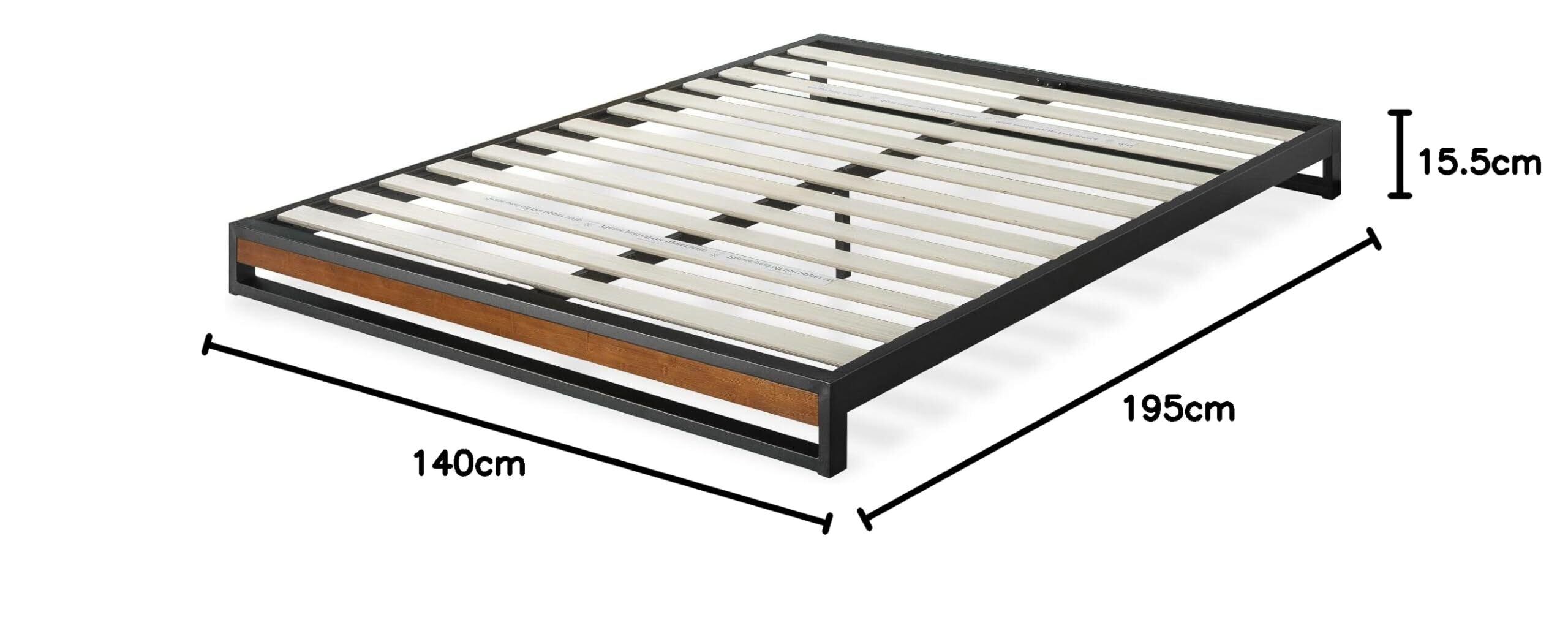 Zinus (ジヌス) Suzanne スチール&ウッド ベッドフレーム ヘッドなし 15cm ブラウン ダブル | IRPF