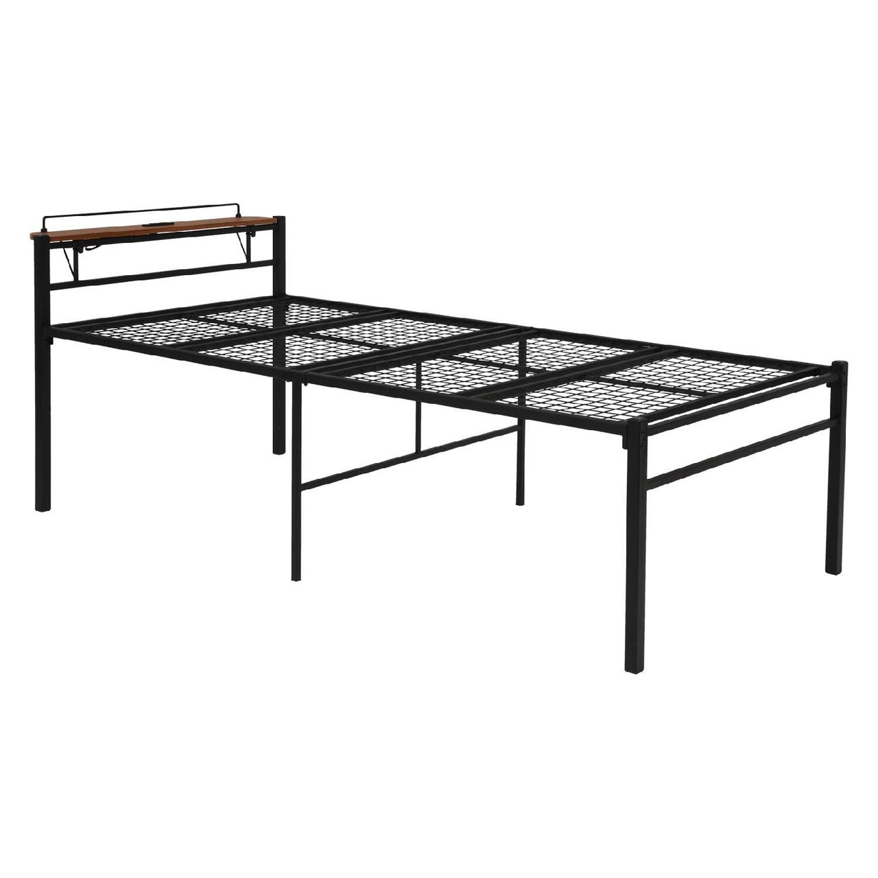 脱着可能なコンセント付き棚板が特徴的なスチール製シングルベッド。床下の高さが約51cmと広く、収納ケースや荷物が置きやすいのでお部屋の収納力が上がります。