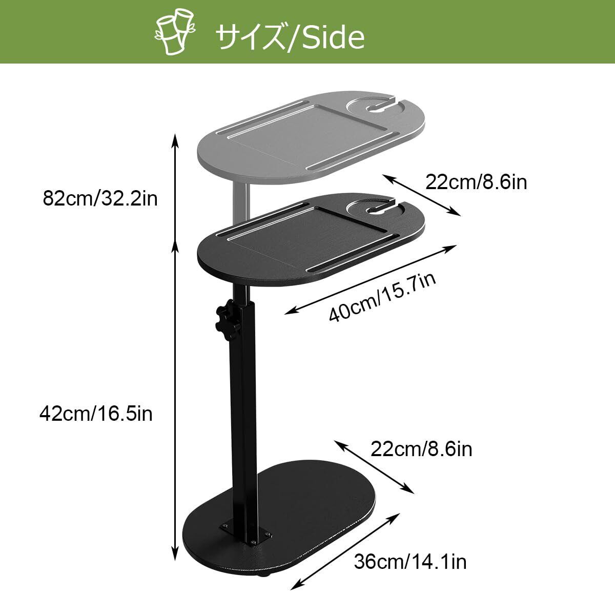 【高さ調節可能】サイドテーブルの高さは42〜82cmの間で調整できます。調節回転を回すだけなので、いつでも簡単に調整が可能。調節感覚の間であれば、自由な位置で設定できるから、少し特殊な大きさの椅子にも難なく対応できます。