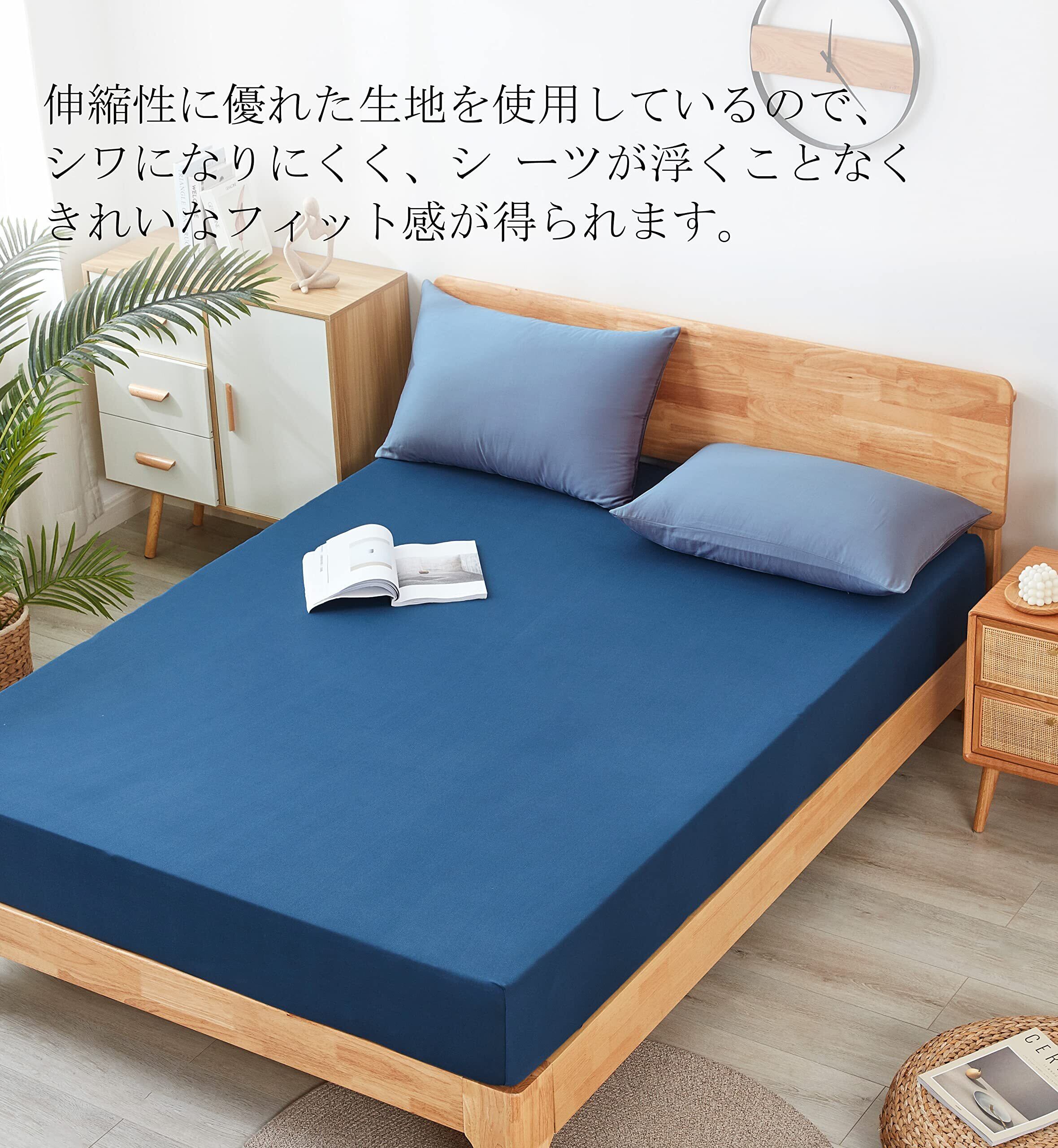 MISOLER ボックスシーツ ベッドシーツ 毛玉なし ベッドカバー マットレス・敷ふとん兼用 のびのびぴったり 通気性 夏・冬オールシーズン吸水速乾 しわにならない 着脱簡単 抗菌防臭 (シングル~セミダブル用・100~120cm×180~210cm ネイビー)