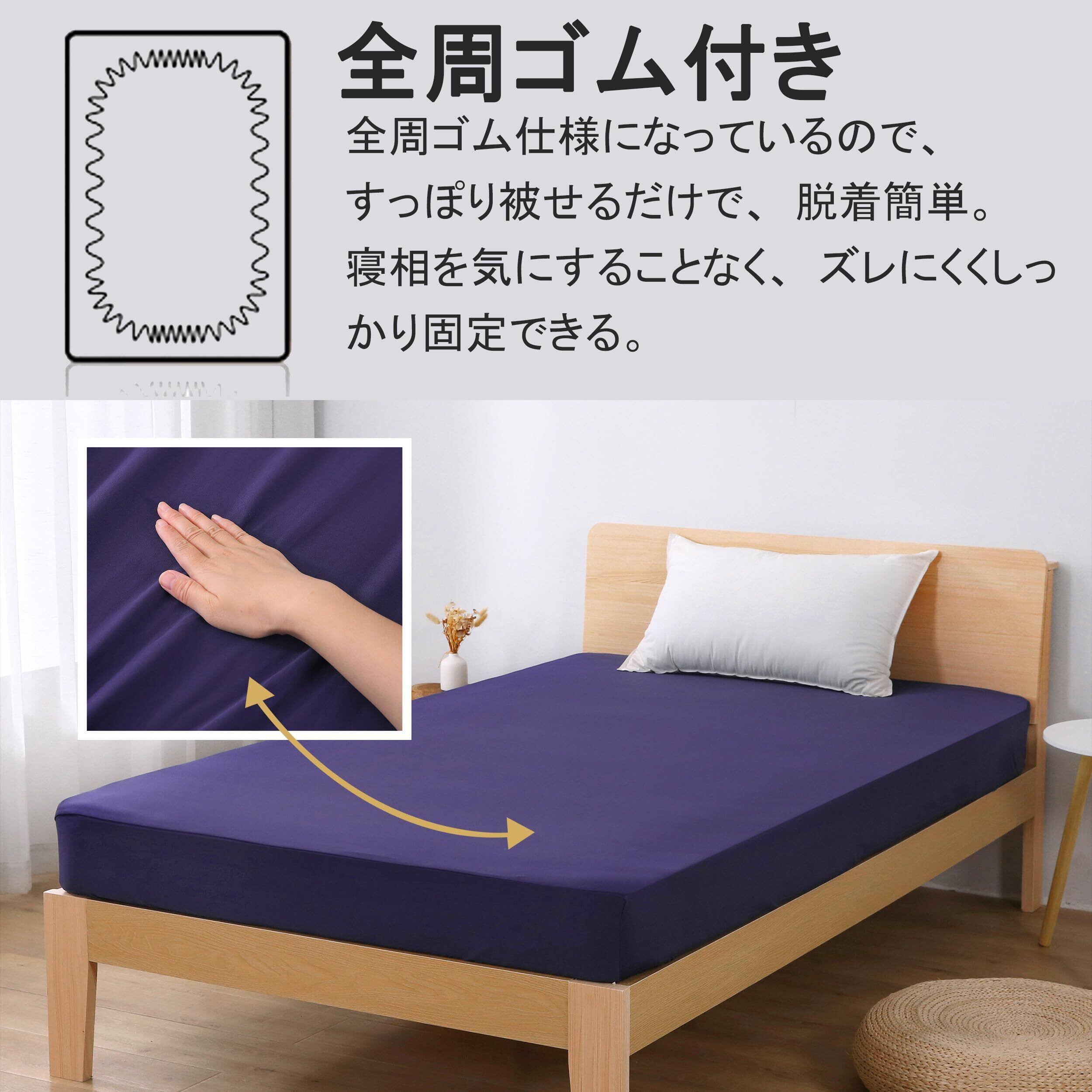 【ストレッチ素材】伸縮性に優れタテにもヨコにも伸びるストレッチ素材だから、手間をかけず簡単に装着可能。シワになりにくく、マットレスにぴったりフィットのボックスシーツです。