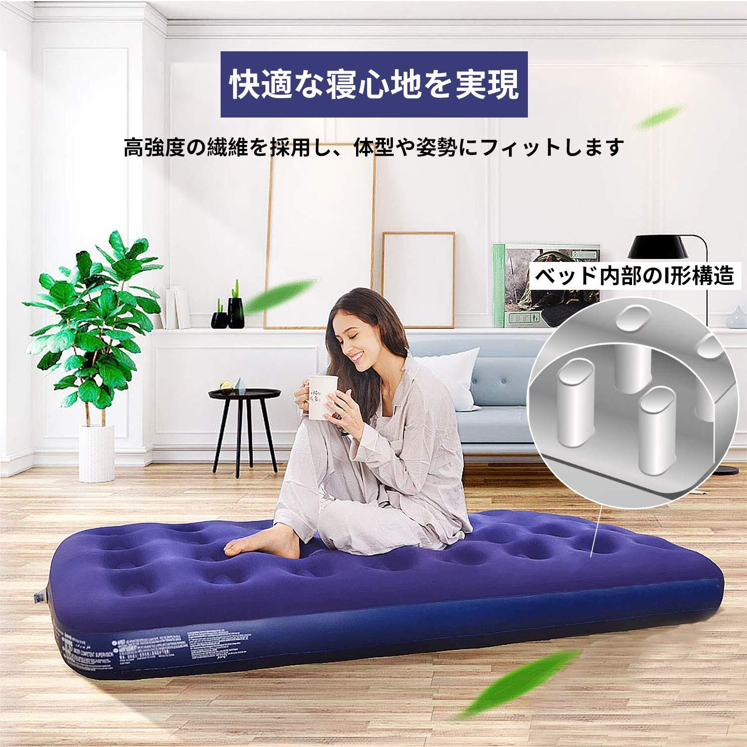 【肌触りの良いフロック表面】高品質のフロック生地を使用し、肌触りも良くて、快適な寝心地を実現できるベッドです。良いPVCポリ塩化ビニルと快適なフロック表面を組み合わせて、防水性と耐久性に優れたエアーベッドが作成され、空気漏れや穴が開くことがない強度を備えています。