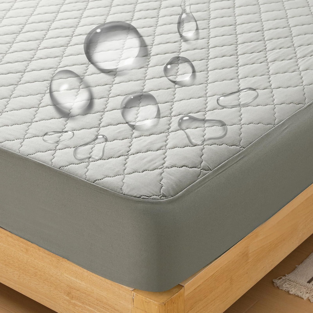 【防水一体型敷きパッド】Vallein 防水シーツ 防水敷きパッド シングル パッド一体型ボックスシーツ セミダブル ダブル ベッドパッド 介護用 吸水速乾 抗菌&防臭&防ダニ加工 ベッドシーツ オールシーズン 通気性 丸洗いOK(ライトグレー·ダブル·140*200cm)