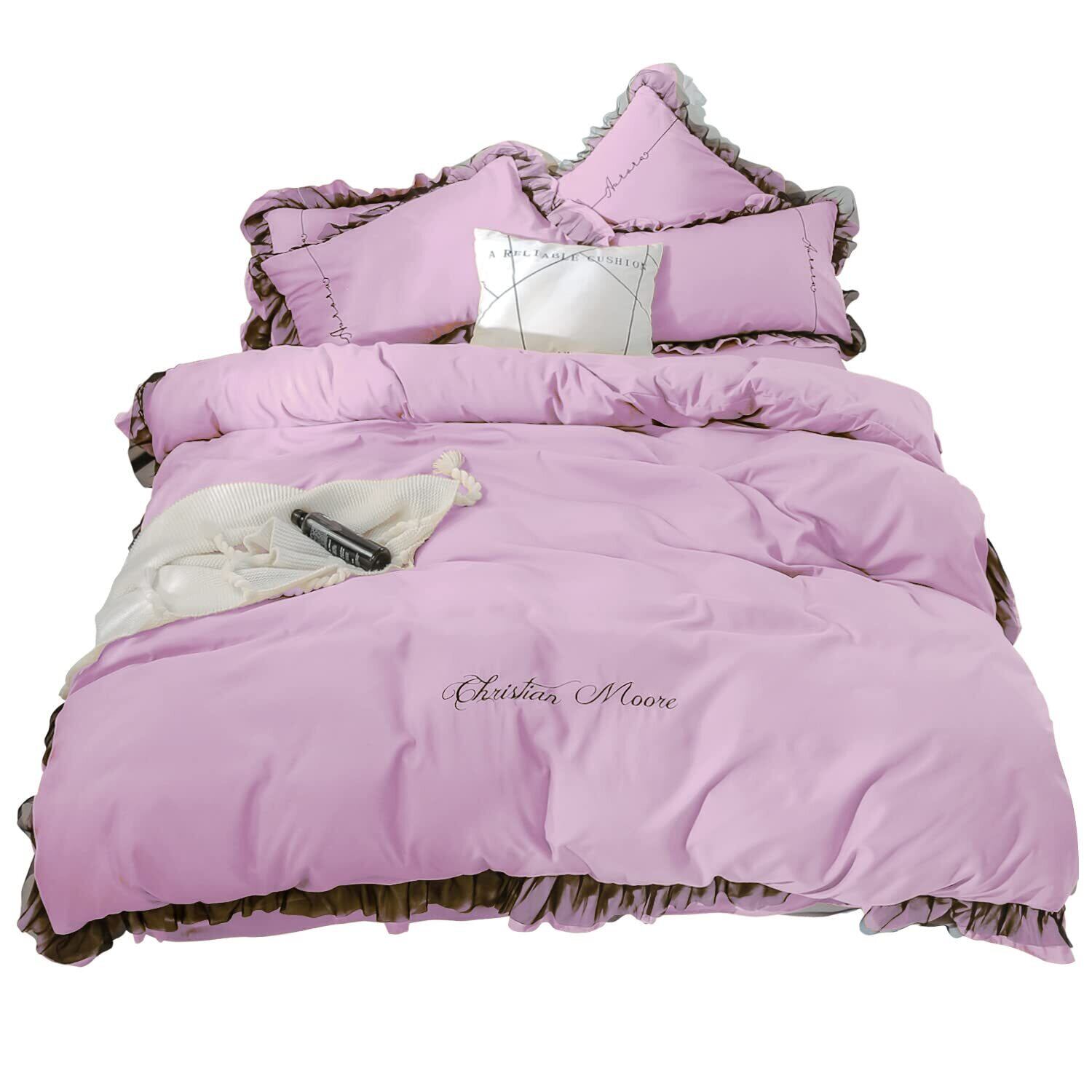 布団カバー シーツ 刺繍 蓮の葉 寝具カバーセット 掛け布団カバー ボックスシーツ 枕カバー ベッド用 布団用 洗い替え速乾タイプ(パープル,セミダブル)