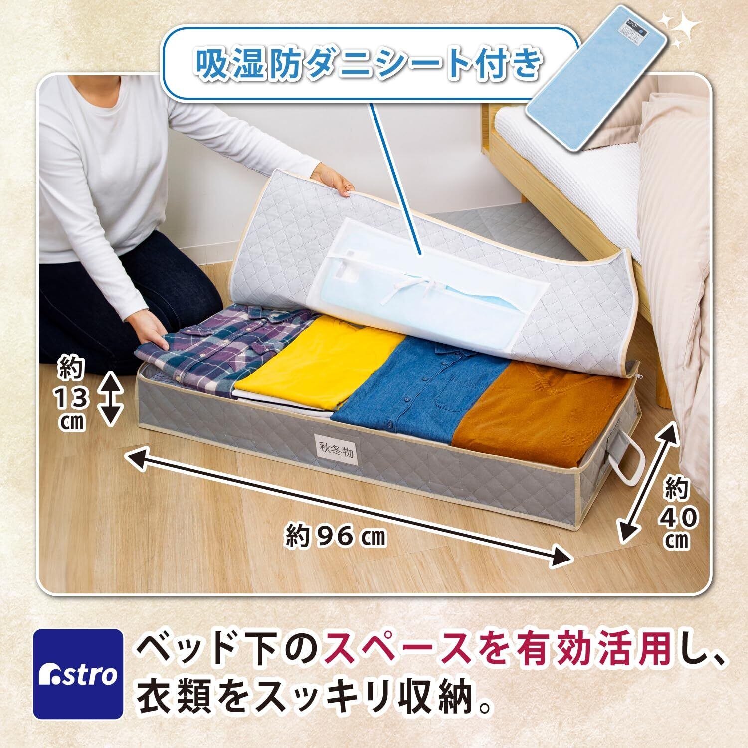 アストロ ベッド下収納 除湿シート付き 繰り返し使える除湿シート付きで湿気やホコリなどをガード 中身がわかるネームポケット付き 防虫剤入れポケット付き 衣類収納 洋服 収納ケース 収納ボックス 衣装ケース 収納袋 クローゼット ベッド下 隙間収納 スリム グレー 179-12