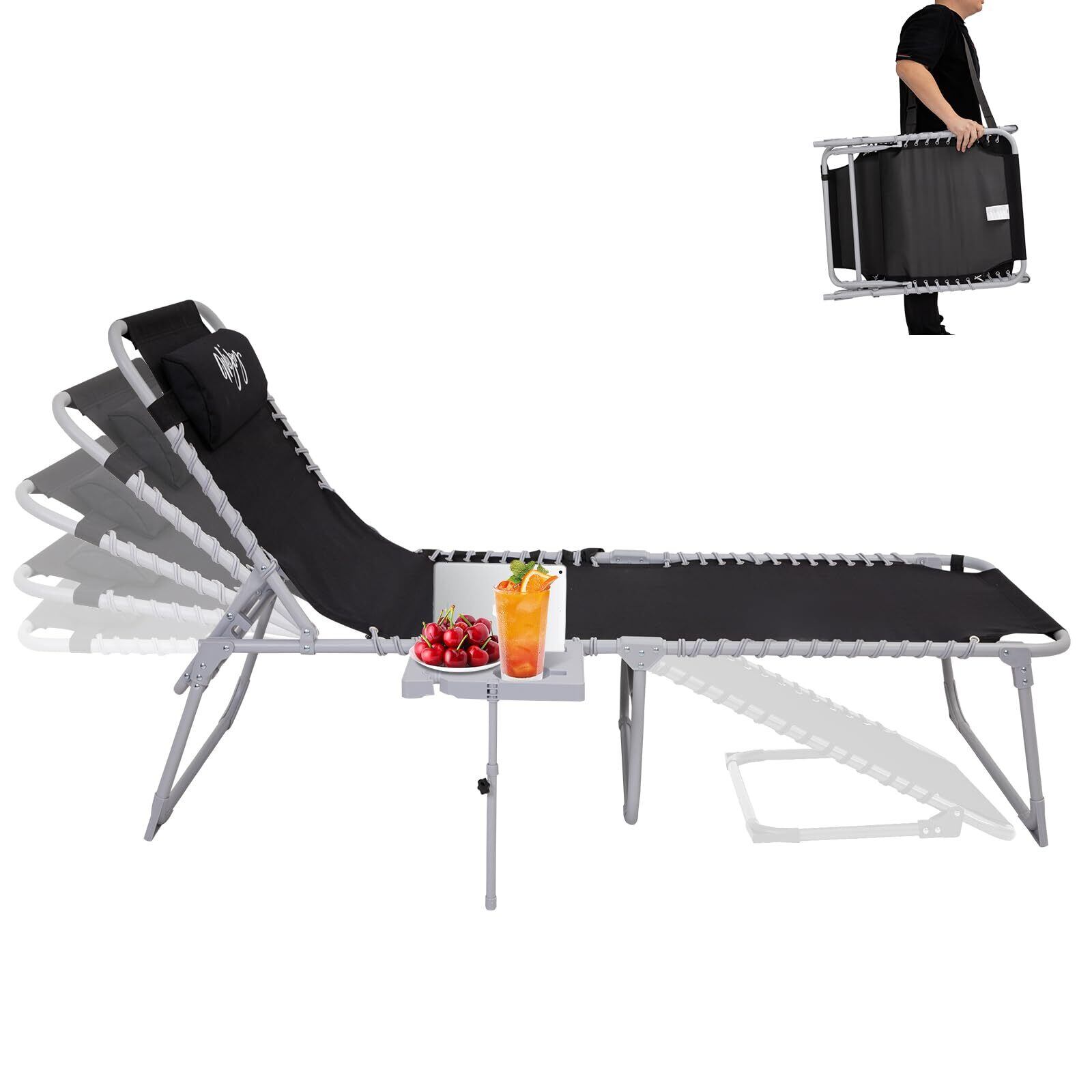 WEJOY キャンプ コット リクライニング サマーベッド アウトドア ベッド 折りたたみ 5段階調整 ビーチチェア 日光浴 耐荷重120kg サイドテーブル付き ブラック