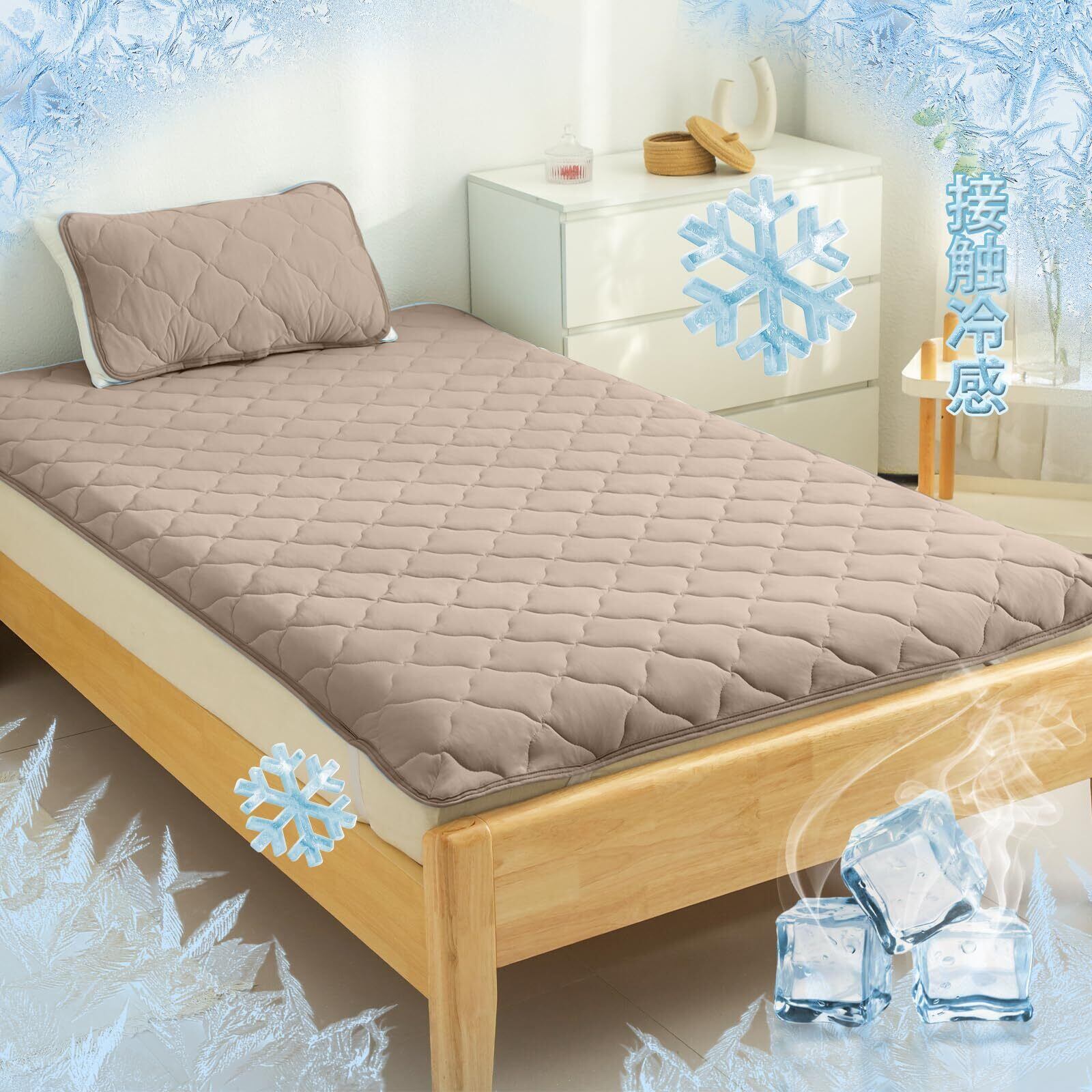 Vallein 敷きパッド シングル 夏 冷感 Q-MAX0.52 冷感シーツ セミダブル ダブル ベッドパッド 夏用 抗菌防臭 吸湿速乾 通気性 丸洗いOK(カーキ,シングル,100*200cm)