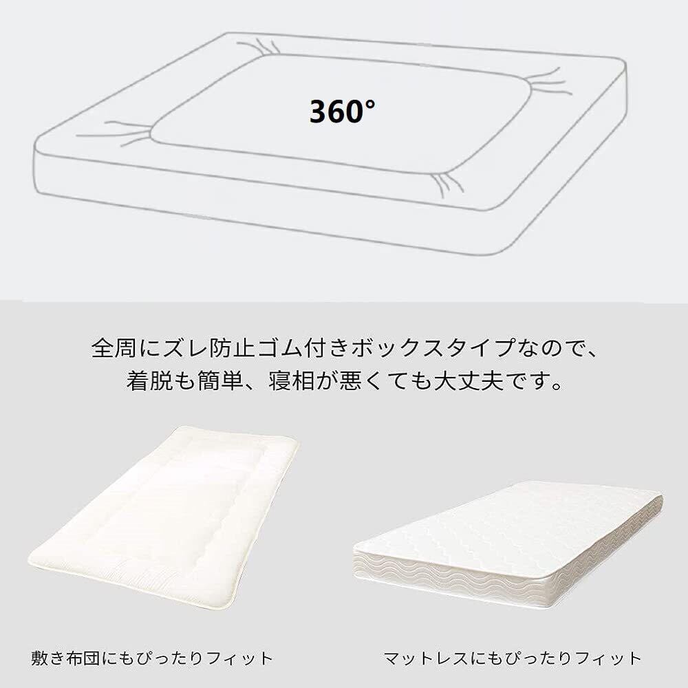 【ボックスタイプ】:全周に25cmのズレ防止ゴム付きボックスタイプなので、厚さ5-23cmのマットレスにぴったりフィットします!便利:ボックスシーツは普通のシーツのようにズレることなく、しわも寄りにくく、毎朝時間をかけて整理する必要がありません。全体ゴム付け、着脱簡単、マットレスの角をぴったり包みます!
