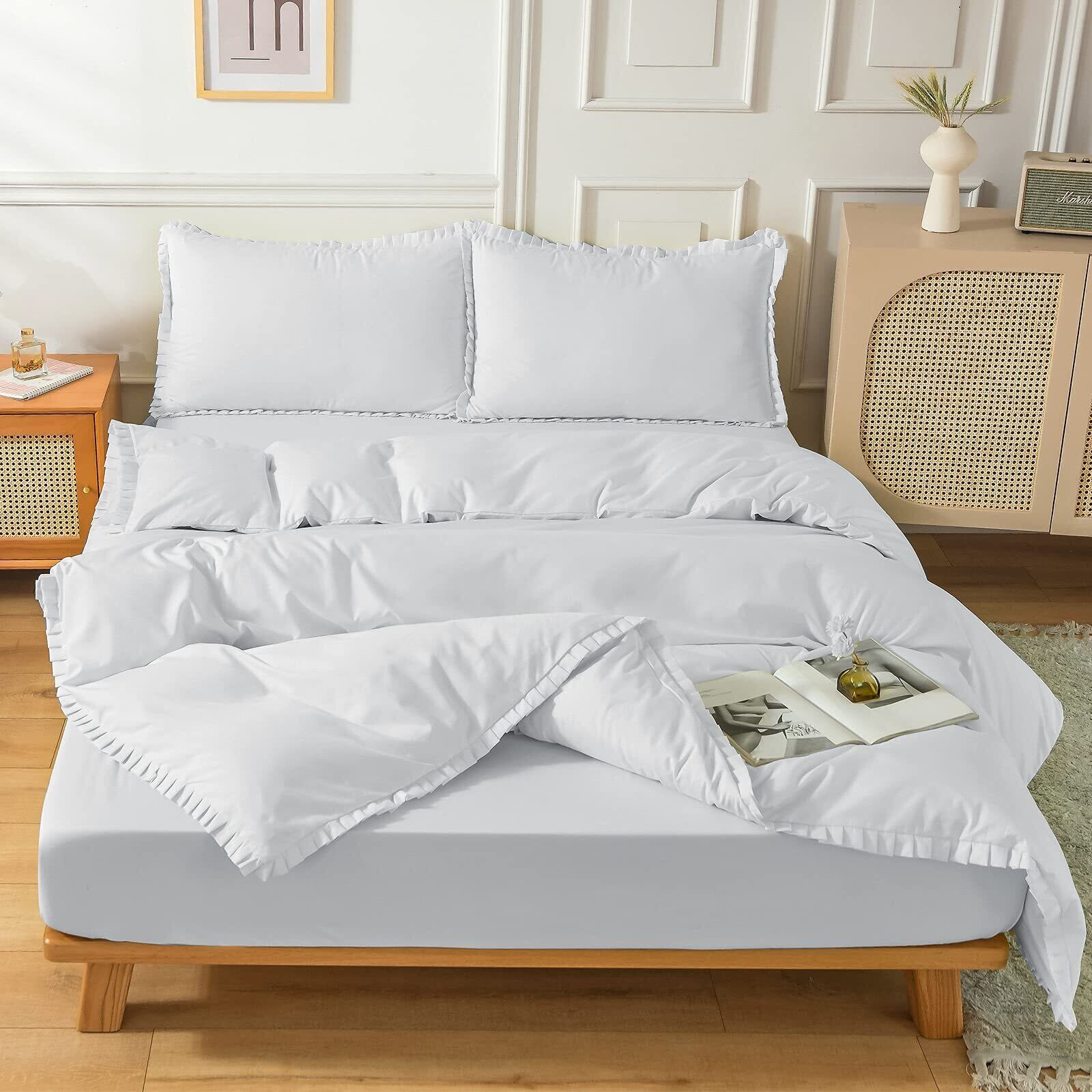 HOSUR 掛け布団カバー シングル しっとり柔らか フリル付き 掛布団カバー ベッドカバー 洋式 和式 ベッド用 こだわり掛け布団カバー 布団用 洗い替え 柔らか 優しい 肌触り 速乾タイプ(ホワイト150*210cm)