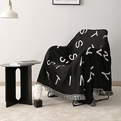GYROHOME ライフ マルチカバー 長方形 大判 ソファーカバー 北欧風 黒と白のパターン 1 2人掛け 180X230cm 厚手 おしゃれ ブランケット フリンジ付き かわいい キルト ベッドカバー 洗濯可能 インテリア 両面使える 四季通用