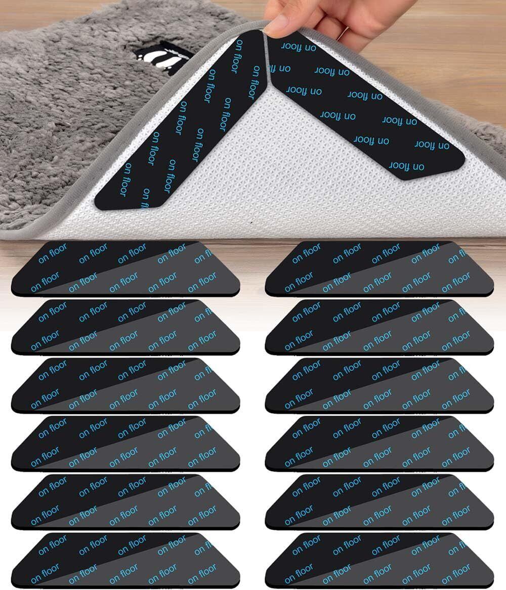 【大判・12枚セット】本製品のサイズは従来の製品より大きいため、小さいカーペットだけでなく、大きいカーペットやラグにも適用。ニーズに合わせて、ハサミで簡単にカットして、好きな形状や大きさで使用することができます。12枚セットなので、幅広い用途に使えるのがメリットです。