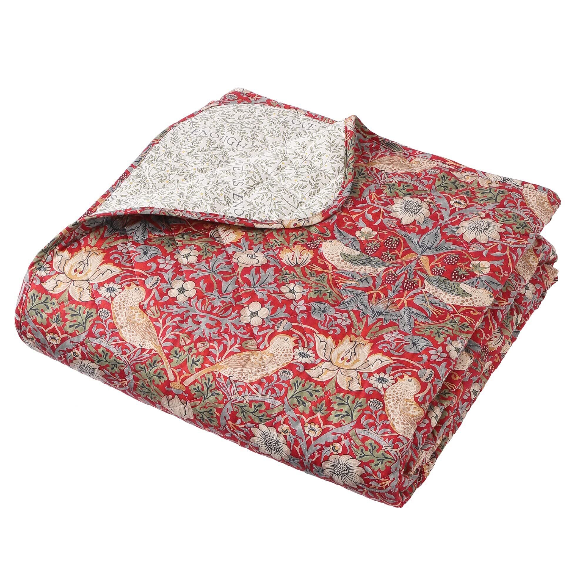 nishikawa 【 西川 】 ベッドスプレッド シングル 185X275cm 綿100%のやからか生地 モリスギャラリー いちご泥棒 洗える 日本製 レッド PG53192600