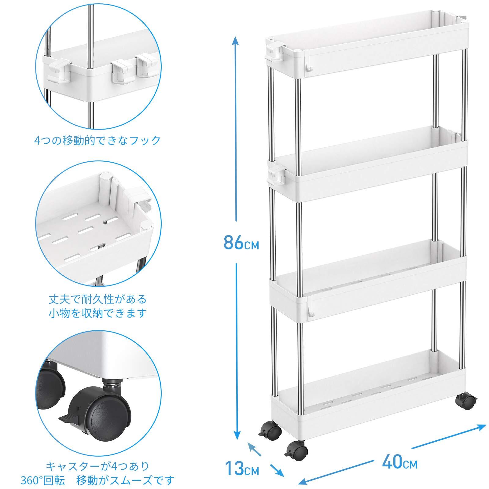 【高品質の家庭用収納 ワゴン】高級な材質は採用なので、高い安定性を誇ります。スリムボディーをして、部屋の隙間に自在に配置されています。トイレ収納、ベッドルーム、居間、子供部屋、キッチン、書店、美容室などの使用に最適して、収納力は抜群です。いろんなシーンで大活躍なキッチンワゴンです