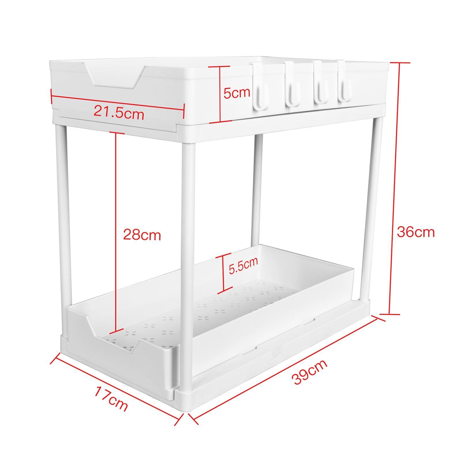 SVOHZAV シンク下 収納 スライド2段式 大容量 幅25cm 28cm シンクした収納ラック 引き出し 調味料収納 洗面台下 キッチン下 収納 多機能 しんくした収納 (ホワイト, 2段スライド 幅21.5cm)