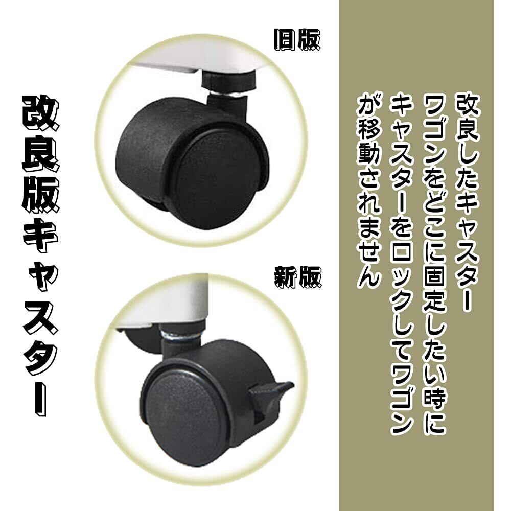 【360°可動・自由回転キャスター】 キャスター付きの収納ラックは便利で使いやすいと思います。キッチンワゴンには4キャスターが付いています。ワゴンを固定したい時は、その2キャスターをロックし、ワゴンが動かないようになりました。隙間にはゴミや埃がはいている場合、ワゴンをちょっと動かしスムーズに移動することができます。家事がラクラク!