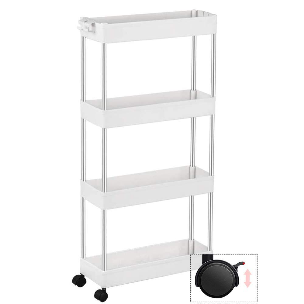 OTYTY キッチンワゴン 収納ラック オープンシェルフ 隙間収納棚 スリム キャスター付き すきま おしゃれ 洗面所 台所 トイレ 浴室 4段 幅13cm/幅22.5cm 耐荷重 ステンレス鋼 ホワイト