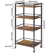 ★サイズと簡単組立:幅42 x奥行き29 x高さ77センチメートル;4層キッチンカートで、各層の耐荷重量15キログラム; 耐荷重量(約):60キログラム。本体は約7.2キログラムで軽量のため、持ち上げて移動することが容易で、小規模な空間にも使用できます。1人で簡単に組み立てることができ、取扱説明書に組み立て方法が記載されています。