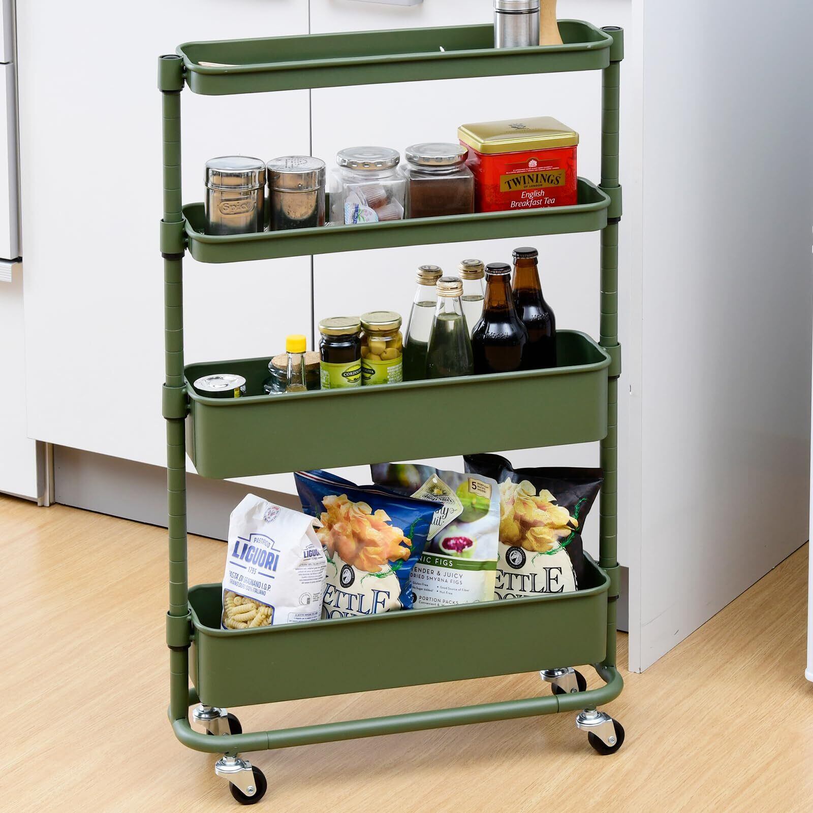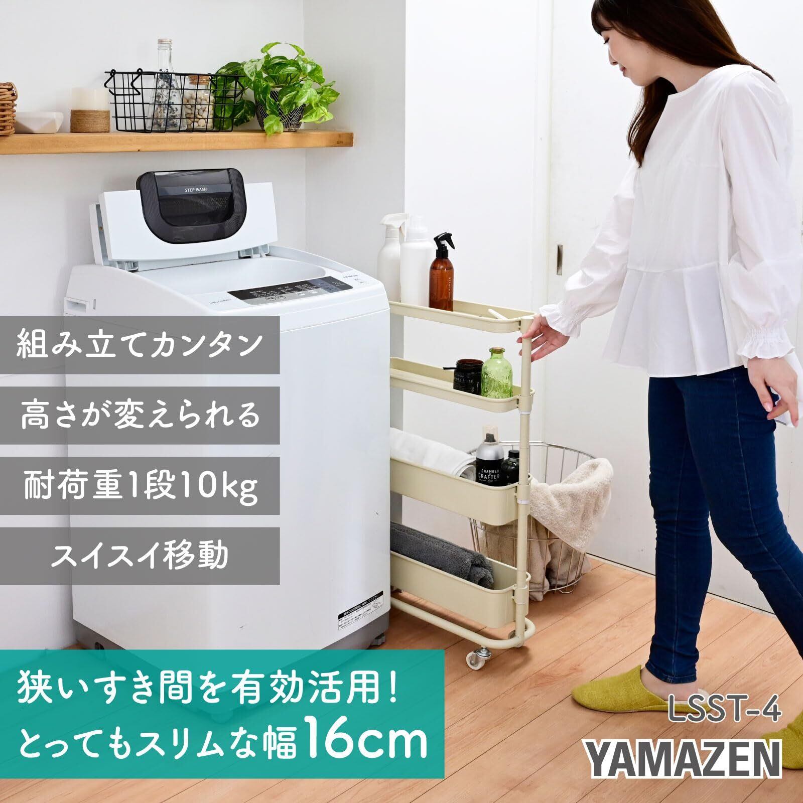 [山善] ワゴン キャスター付き 隙間収納 スリム 高さ調節可能 全体耐荷重40kg 幅16×奥行49.5×高さ80cm キッチンワゴン 収納ワゴン すき間 組立品 カーキ LSST-4(KH)