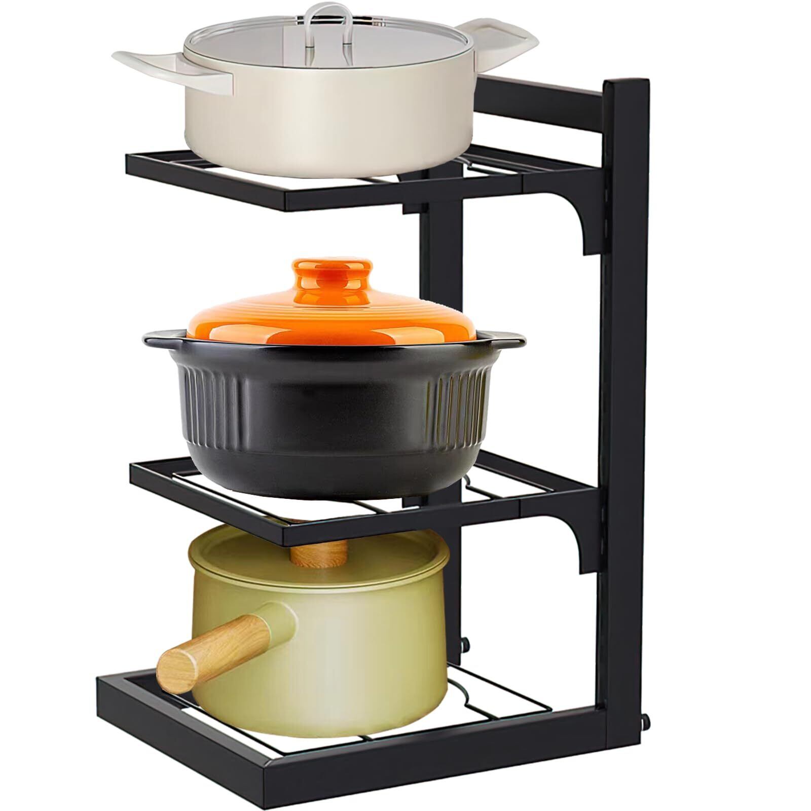 【多機能フライパンラック】シンク下収納ポットラック。さまざまなサイズのなべ以外に、フライパン、断熱コースター、鍋蓋、まな板、その他のキッチン用品などの収納にも使われます。食器棚でのご使用に最適です。省スペースでキッチンをもっとすっきりに整理します。