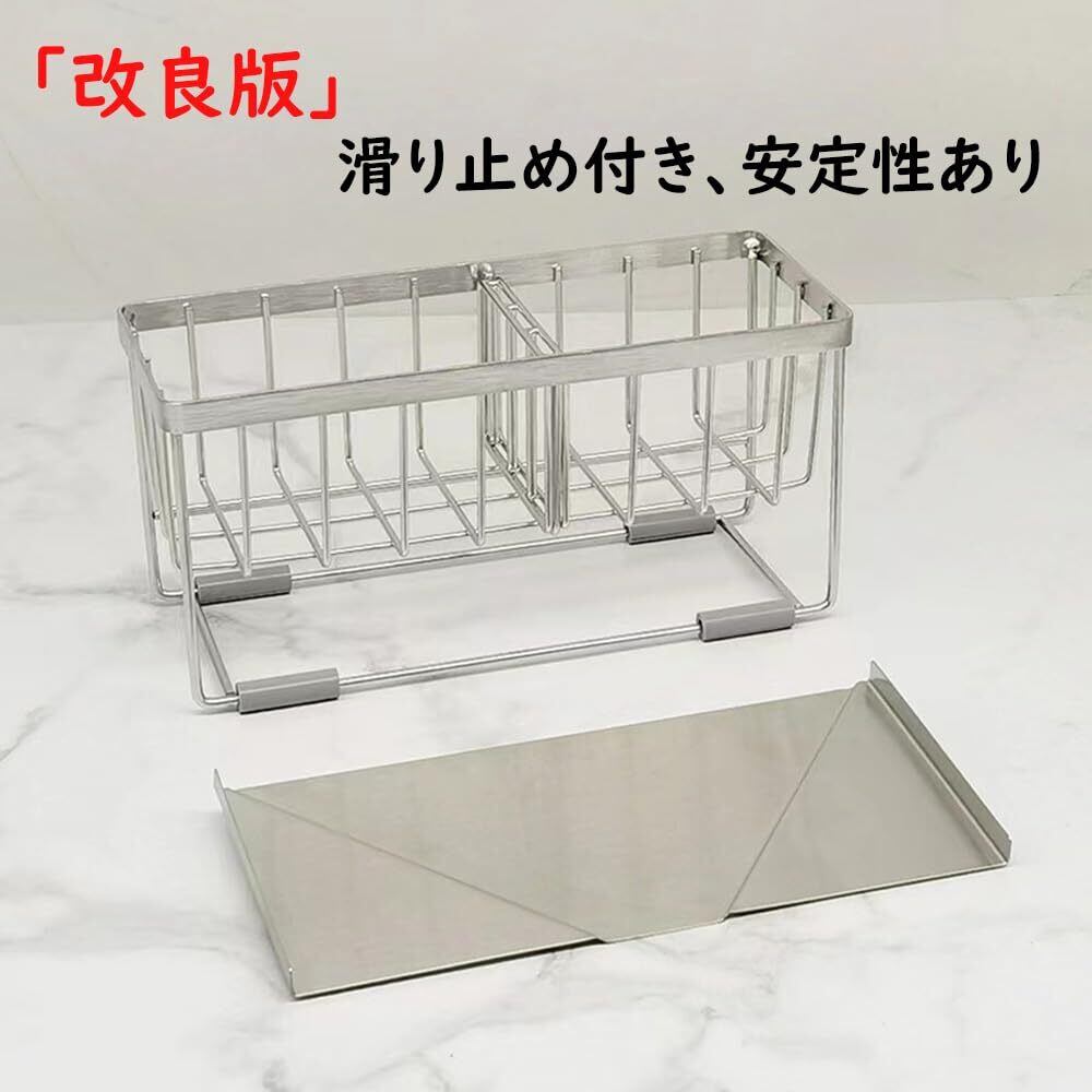 スポンジホルダー スポンジ置き たわし入れ 水が流れるスポンジラック Kiranic 可動式仕切り2枚付き ステンレス製 錆び防止 ボトルホルダー 洗剤置き たわしホルダー スポンジ収納 水まわり用品 説明書付き