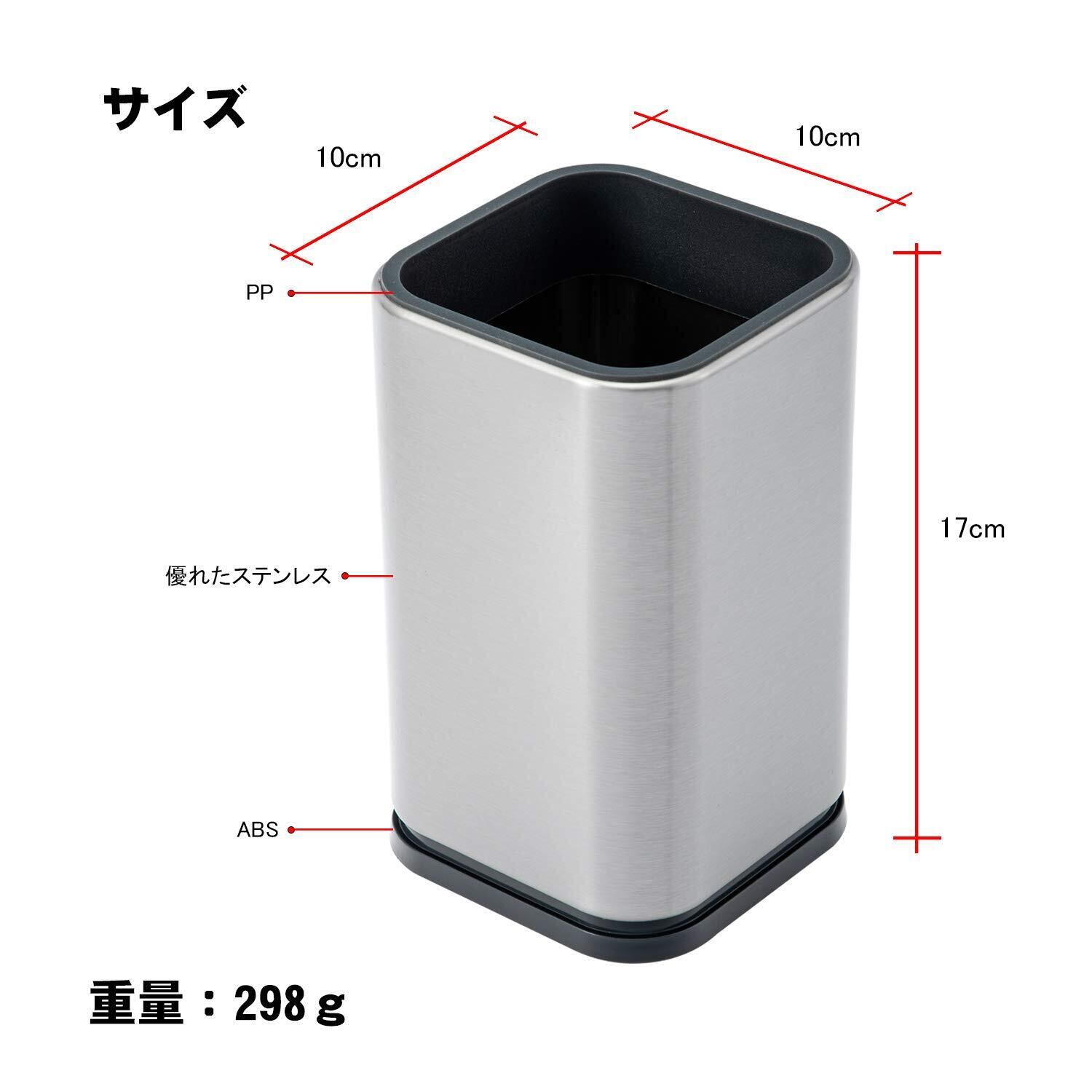 1.仕様関係:横幅/約10cm 高さ/約17cm 本体重さ/約298g。素材・材質: 18/0ステンレス+PP/ABS 加厚型のステンレス製は厚重感が良くて倒れる心配がありません。