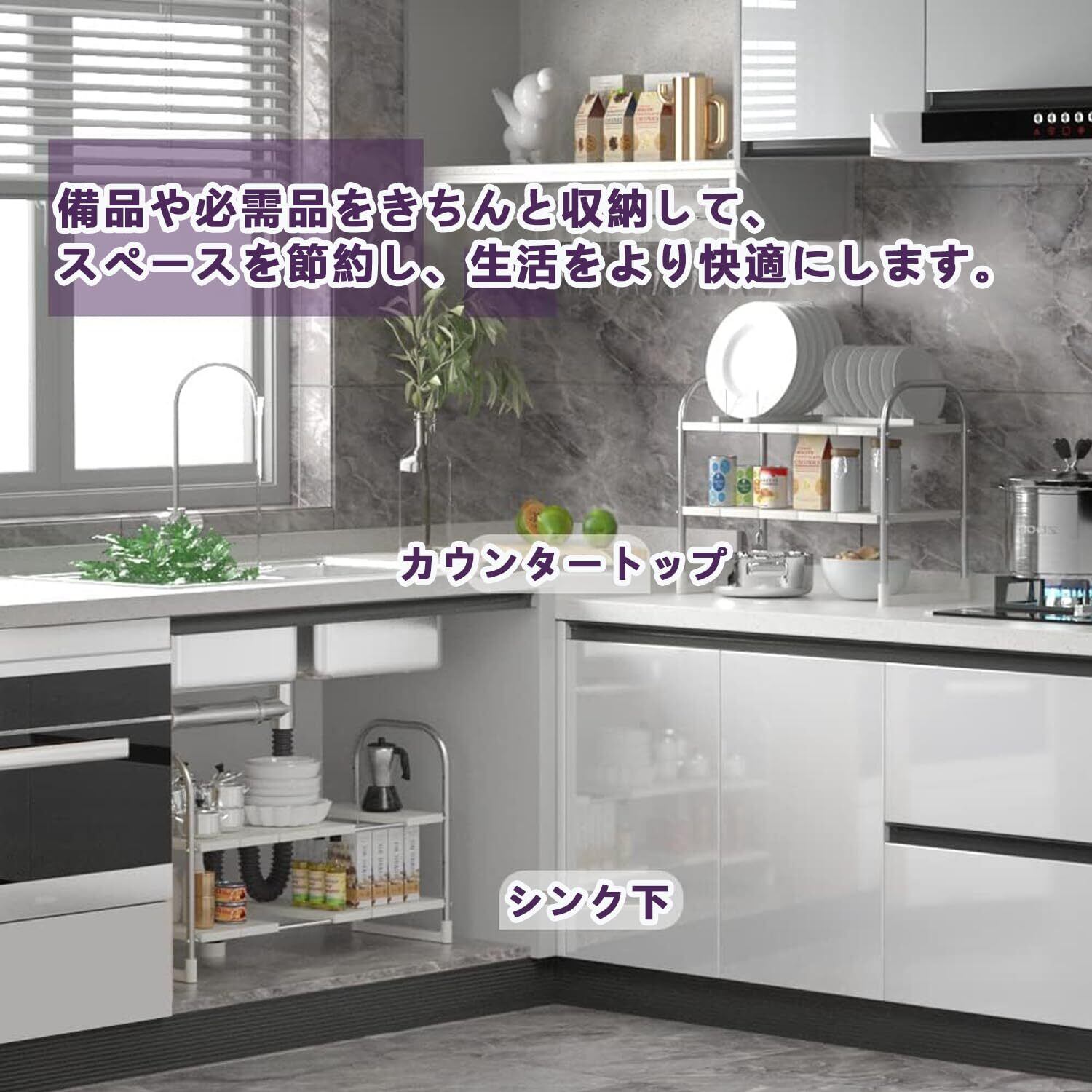 NIJOSTORE シンク下 収納ラック キッチンラック シンク下 ラック シンク下伸縮棚 2段 伸縮式 高さ調整可能 台所収納 簡単組立 流し台 フライパン 鍋 収納 台所 押入れ 食器棚 洗面所 (ホワイト-10板)