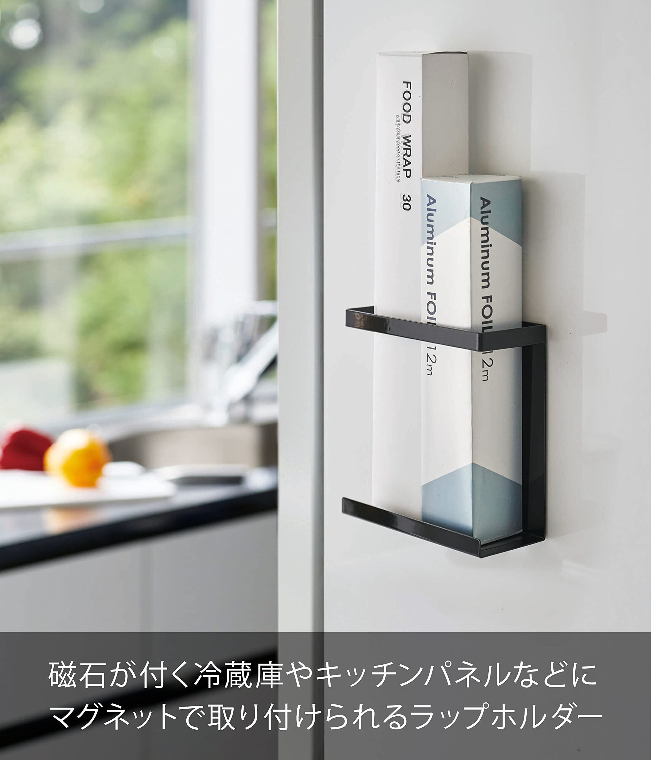 マグネットが付くスチール壁面に簡単取り付けのラップホルダー。