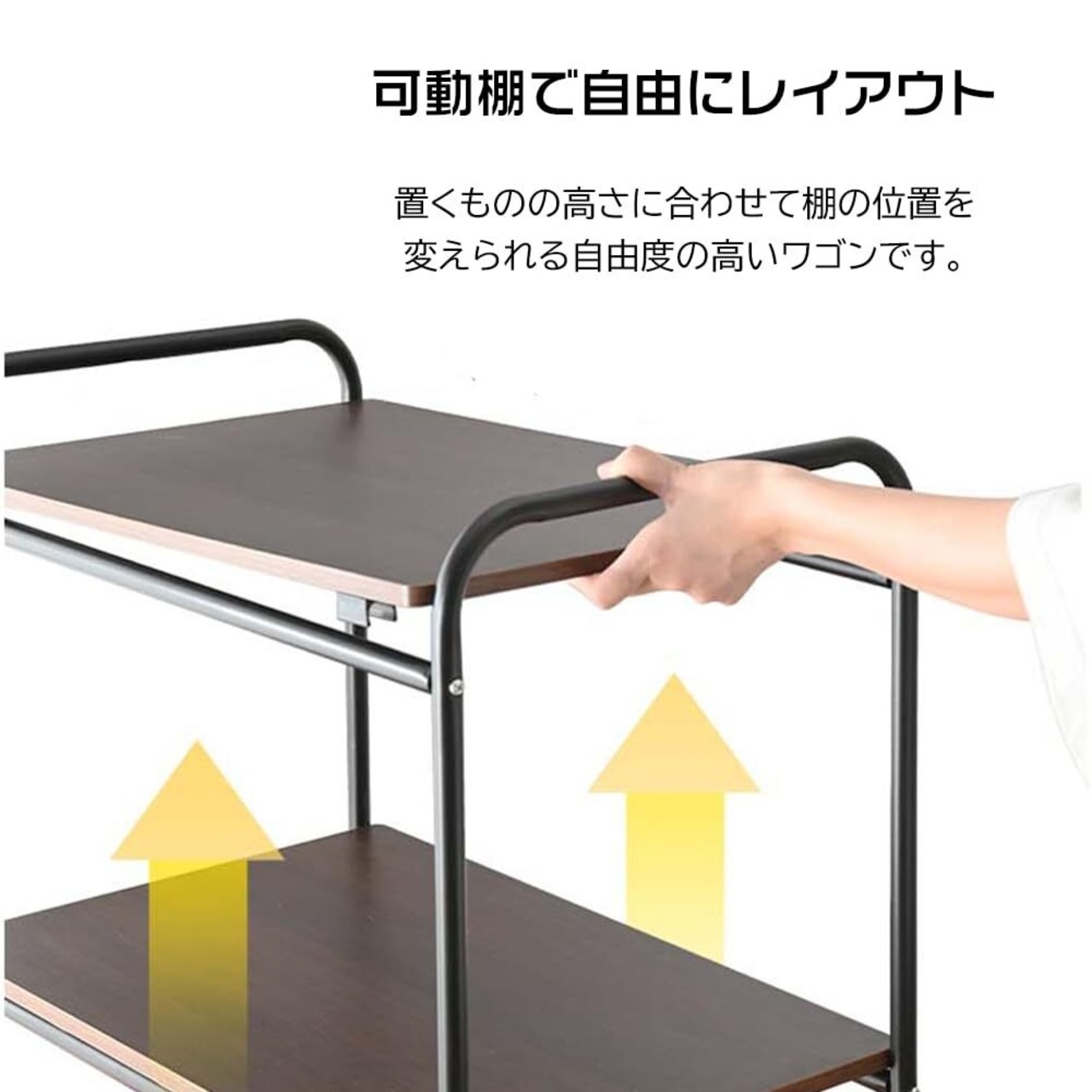 【シンプルなデザイン】食品の収納やストックはもちろん、料理を盛り付ける時にサイドテーブルとしてお使いいただいても便利です。工夫次第で様々な使い方ができるキッチンワゴンです。