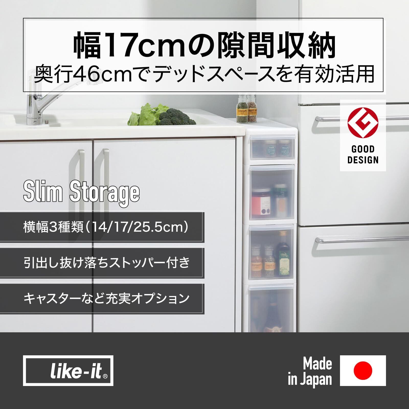 ライクイット (like-it) キッチン収納 すき間 引出し スリム 4段 キャスター付 約幅17x奥46.5x高83cm オールホワイト 日本製 TS-4 隠す収納 幅17㎝ デッドスペース収納 すき間を活用 レトルト食品収納 レトルトカレー