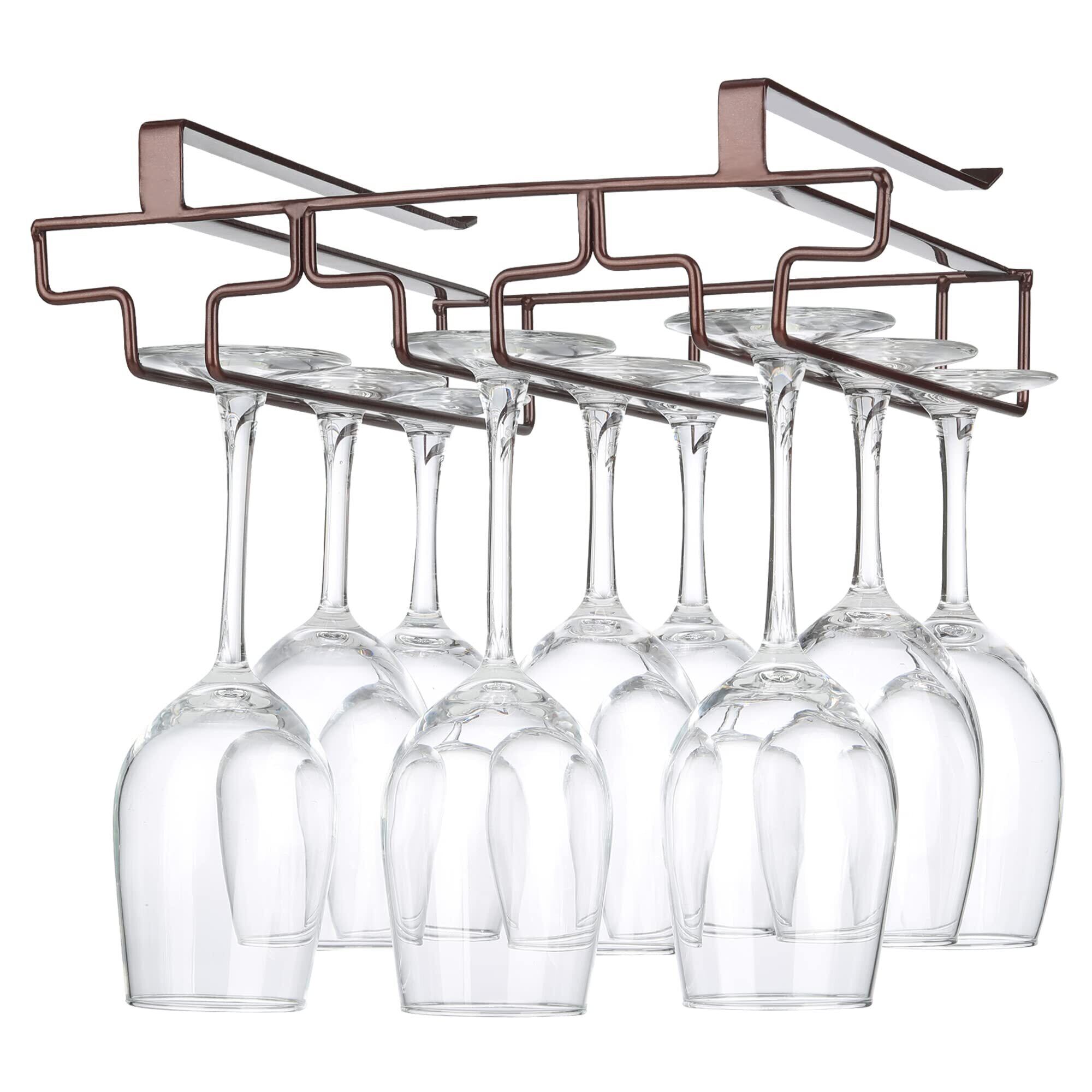 FOMANSH ワイングラスホルダー 吊り下げ 穴あけ不要 収納可能 ネジ止め不要 棚厚さ調節可能 キッチン 茶色