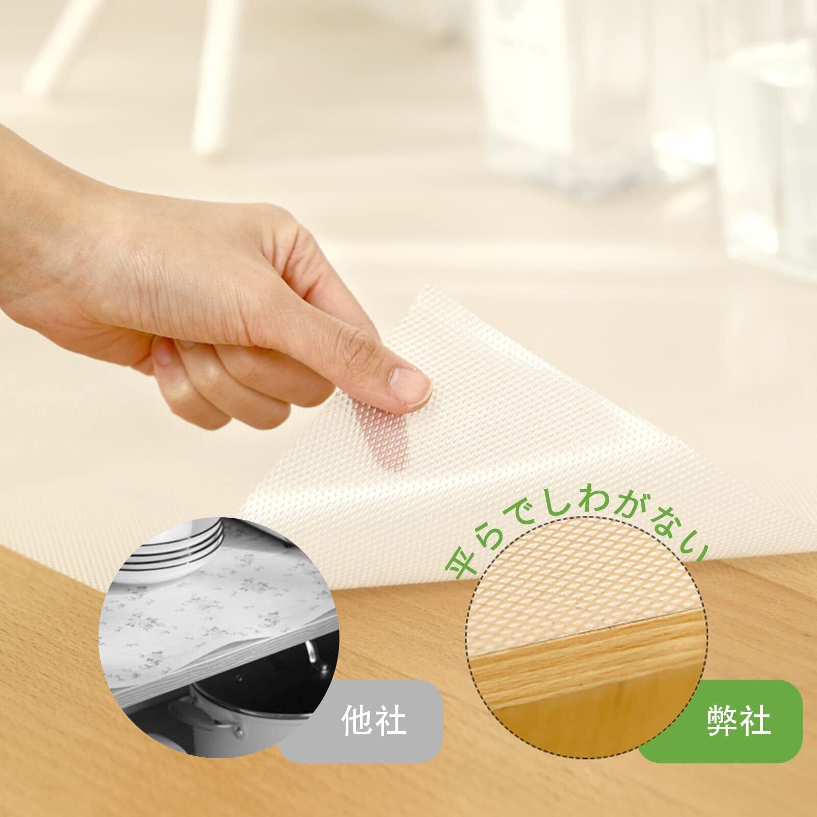 【ある程度のズレ防止、お手入れ簡単】シート表面のユニークな凹凸デザインにより、ある程度の滑り止め効果があります。棚板の材質や表面状態によって、滑り止め機能が低下する場合があります。手洗い可能なので表面が汚れてもサッと拭き取れるのでお手入れもラクラク。