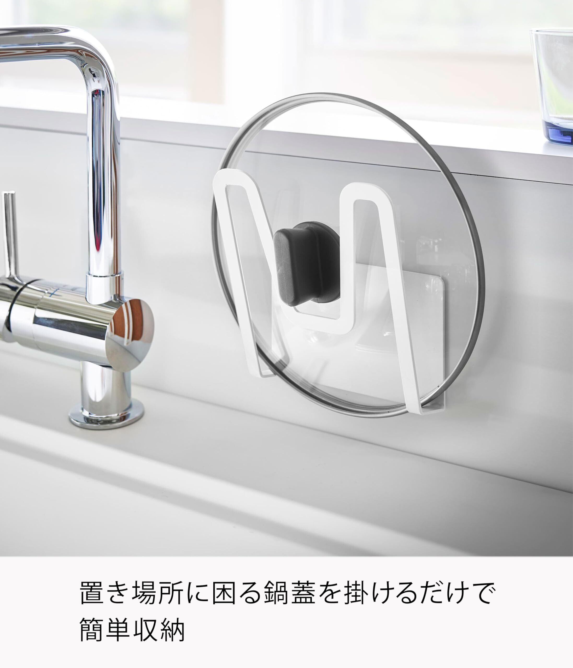 山崎実業(Yamazaki) マグネット 鍋蓋ホルダー ホワイト 約W13.5×D6.5×H14cm プレート Plate 鍋蓋立て 鍋蓋収納 浮かせる収納 3524