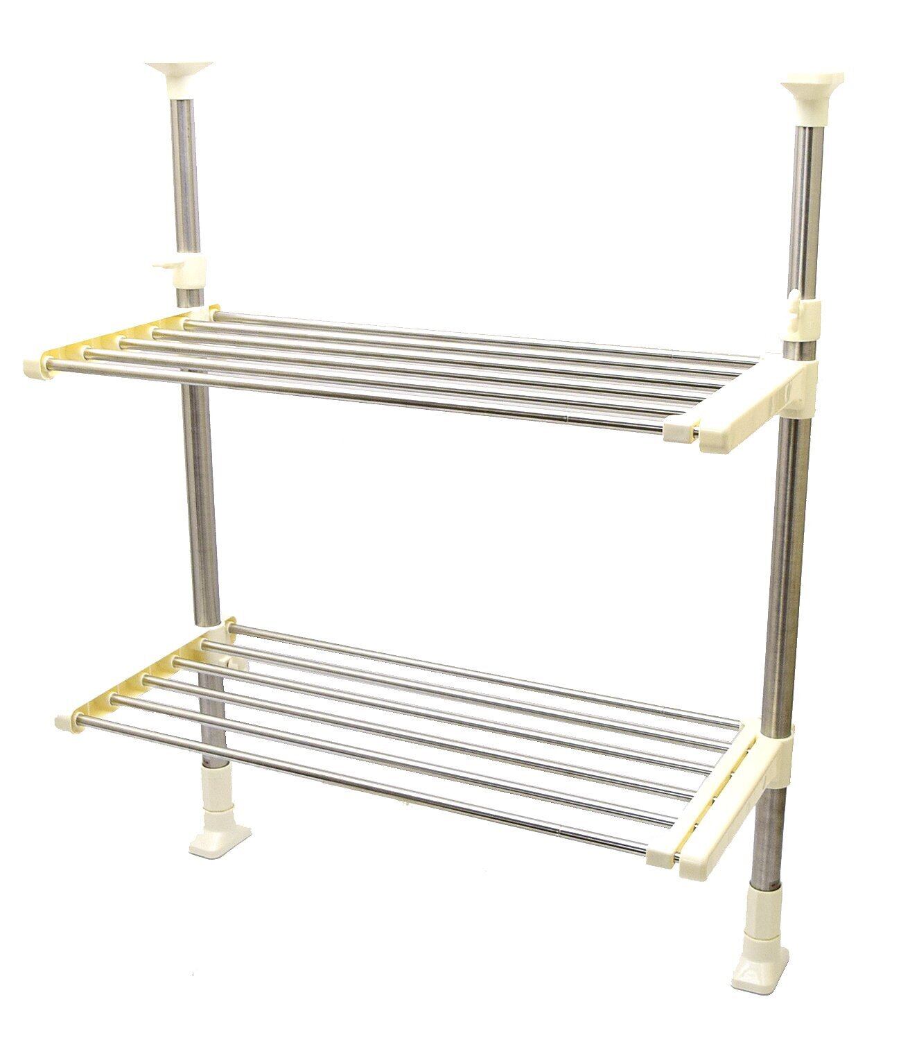 高儀 TAKAGI ステンレス スライド式 伸縮突っ張り棚 2段 棚 幅調整可能 つっぱり 工事不要 シルバー キッチン置き棚 収納棚 キッチン収納 錆びにくい 耐荷重10kg